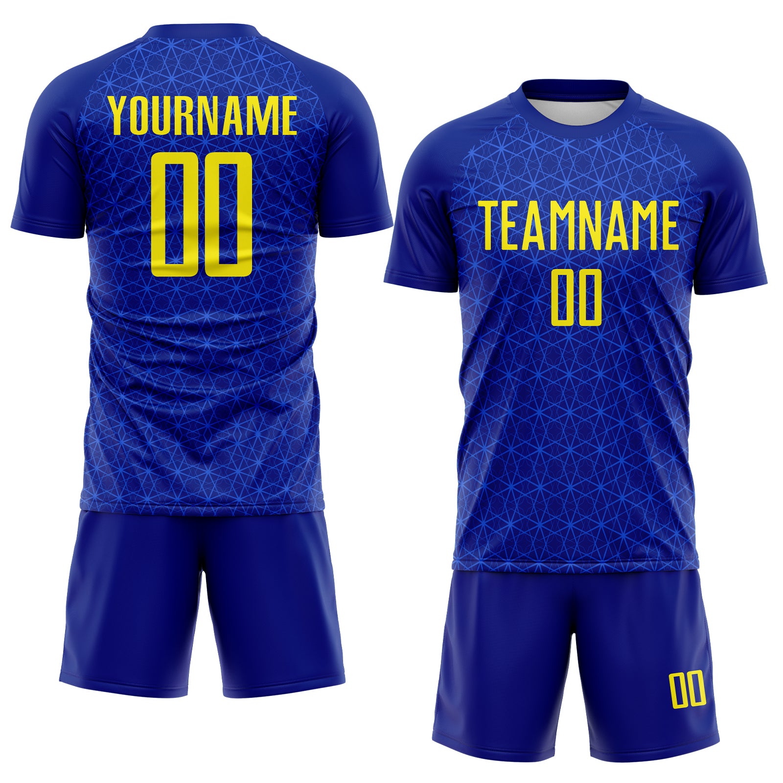 Custom Blue Light Yellow Brasil Digital Geometric Grid Sublimation Soccer Uniform Jersey