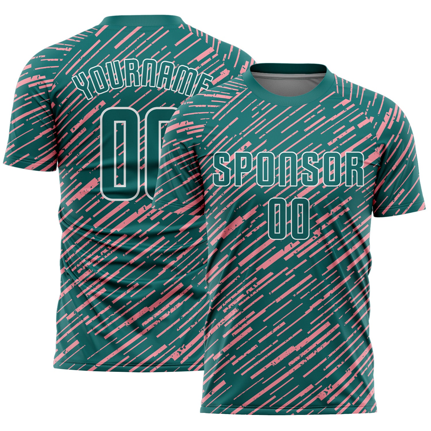 Custom Teal Medium Pink-White Line Sports Sublimation Soccer Uniform Jersey