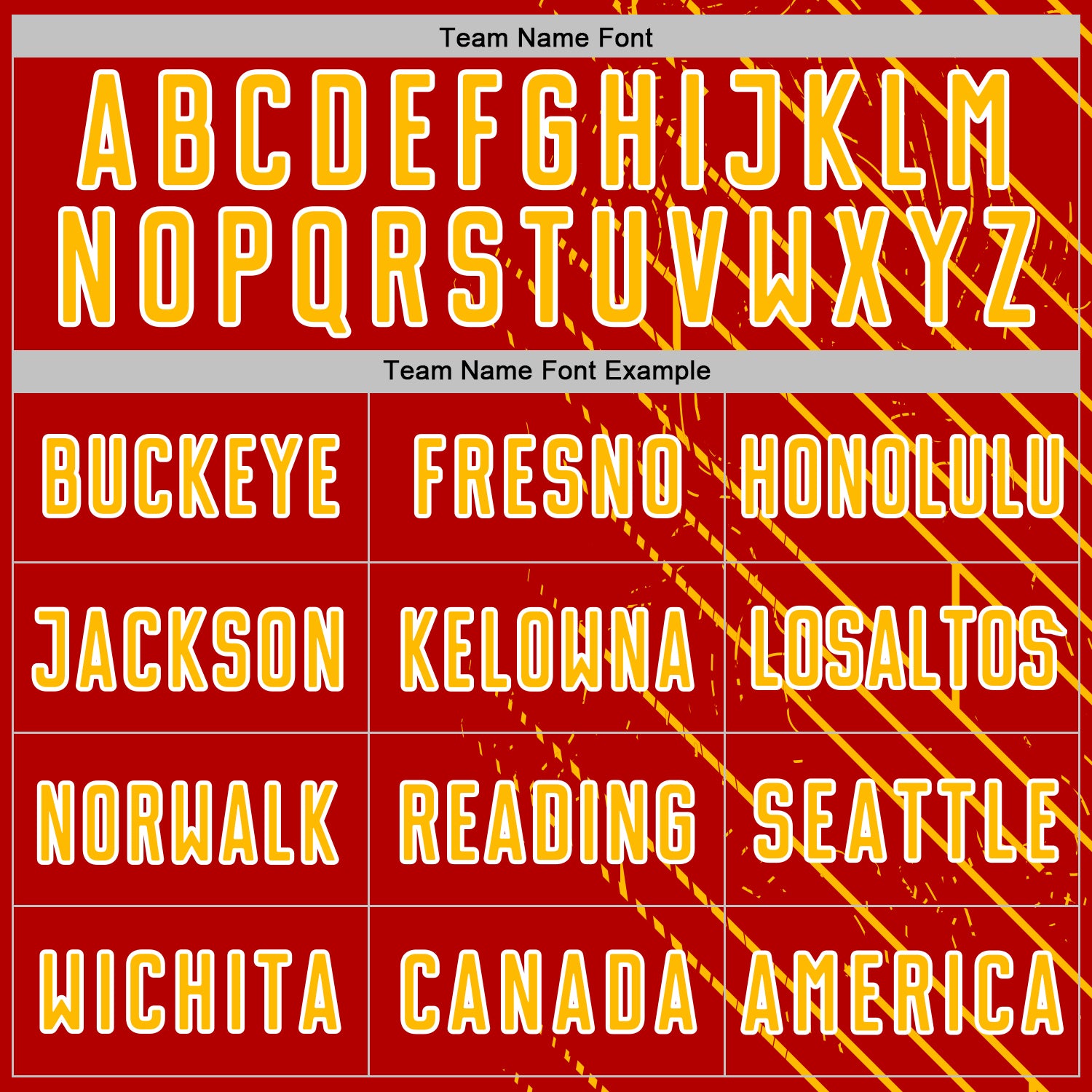 Custom Red Gold-White Lines Sports Sublimation Soccer Uniform Jersey