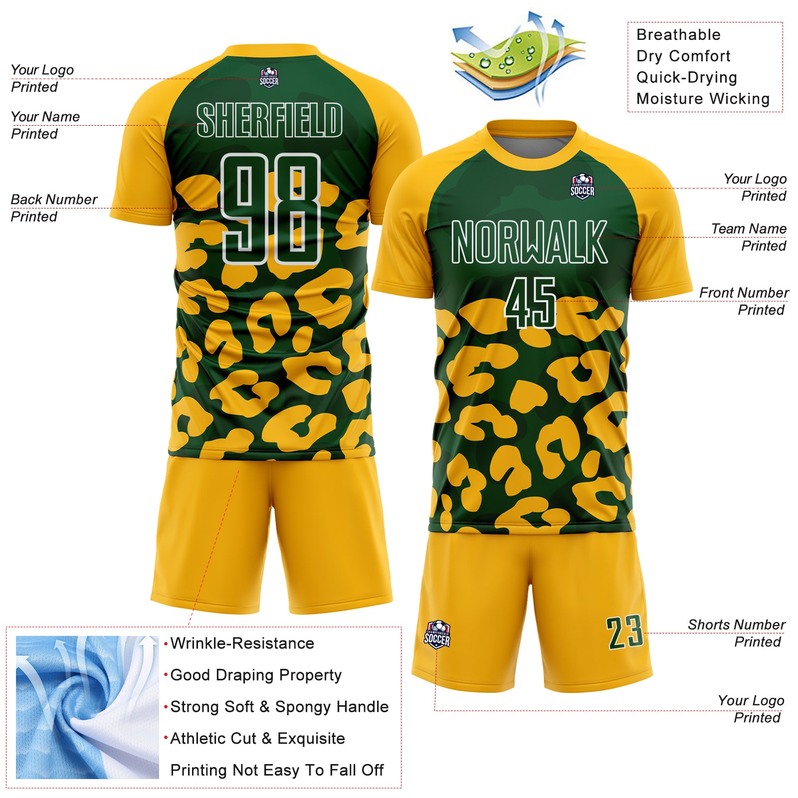 Custom Gold Green-White Animal Leopard Print Sports Sublimation Soccer Uniform Jersey