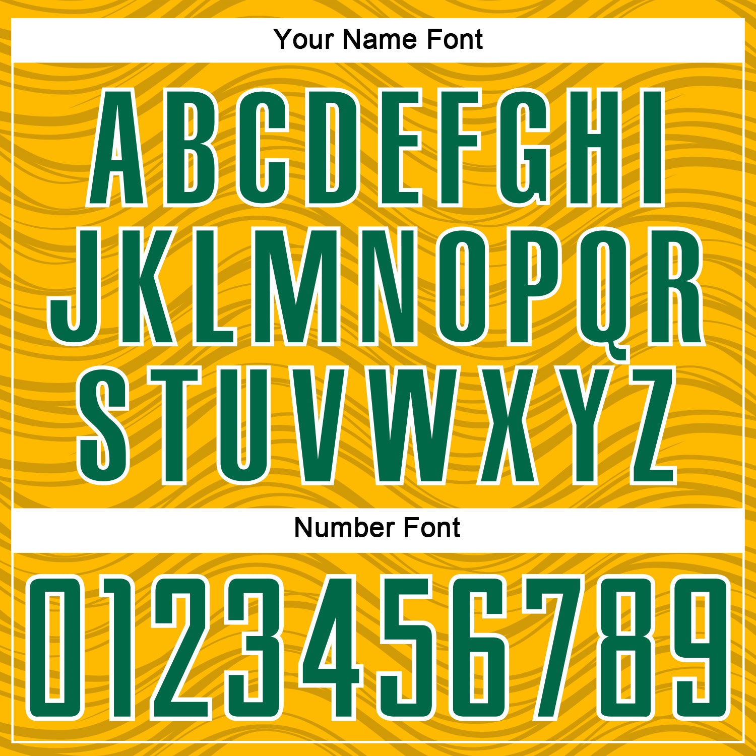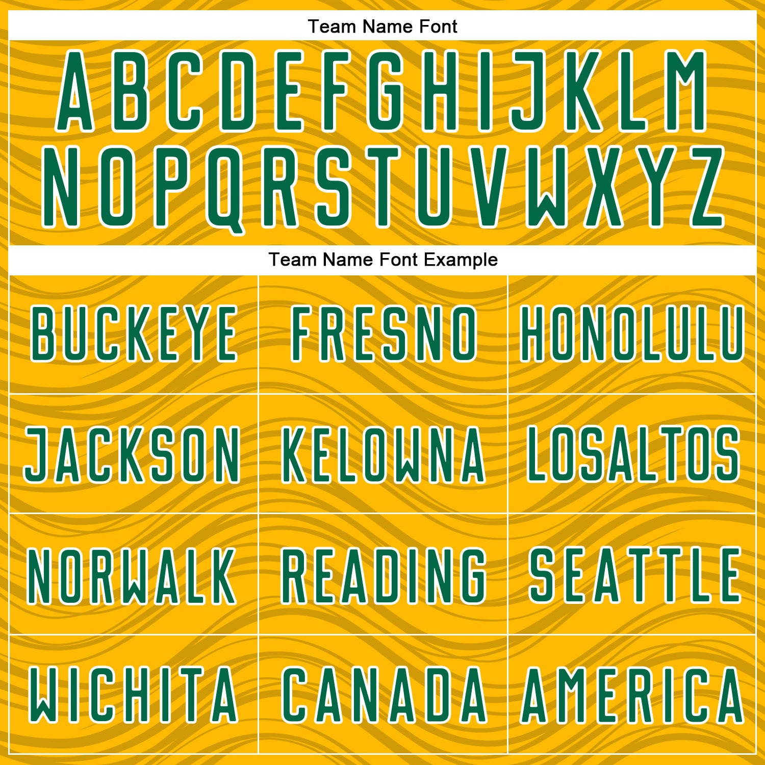 Custom Gold Kelly Green-White Wavy Lines Sports Sublimation Soccer Uniform Jersey