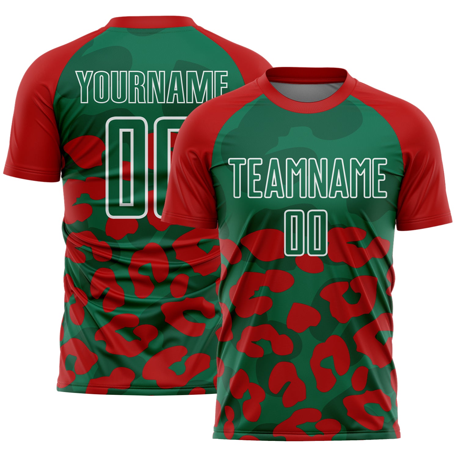 Custom Red Kelly Green-White Animal Leopard Print Sports Sublimation Soccer Uniform Jersey