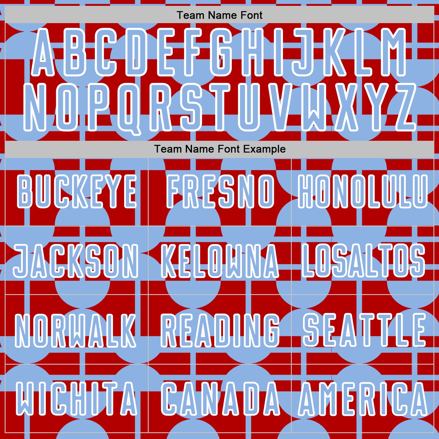 Custom Red Light Blue-White Geometric Shapes Sports Sublimation Soccer Uniform Jersey
