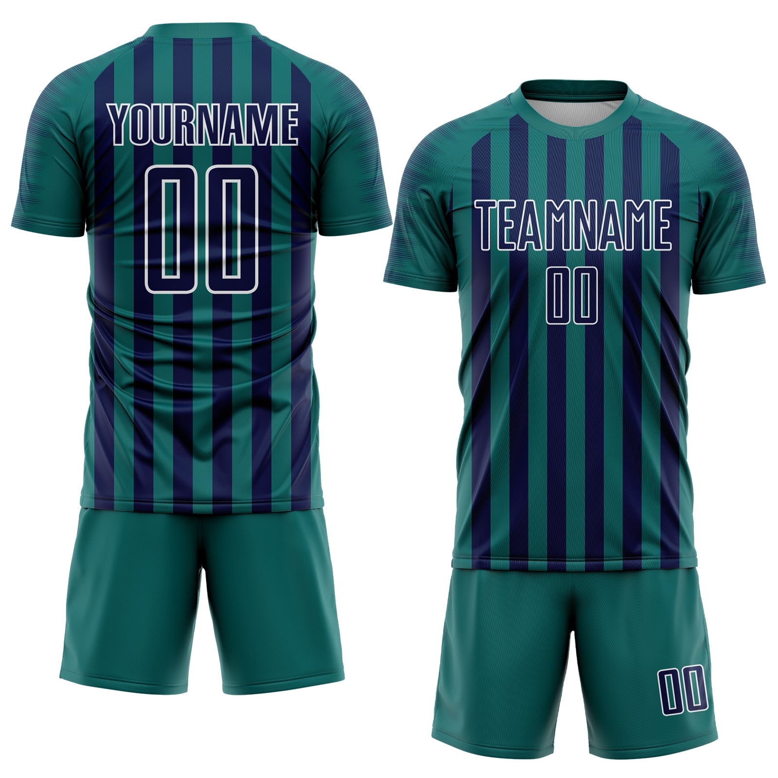 Custom Teal Navy-White Stripe Sports Sublimation Soccer Uniform Jersey