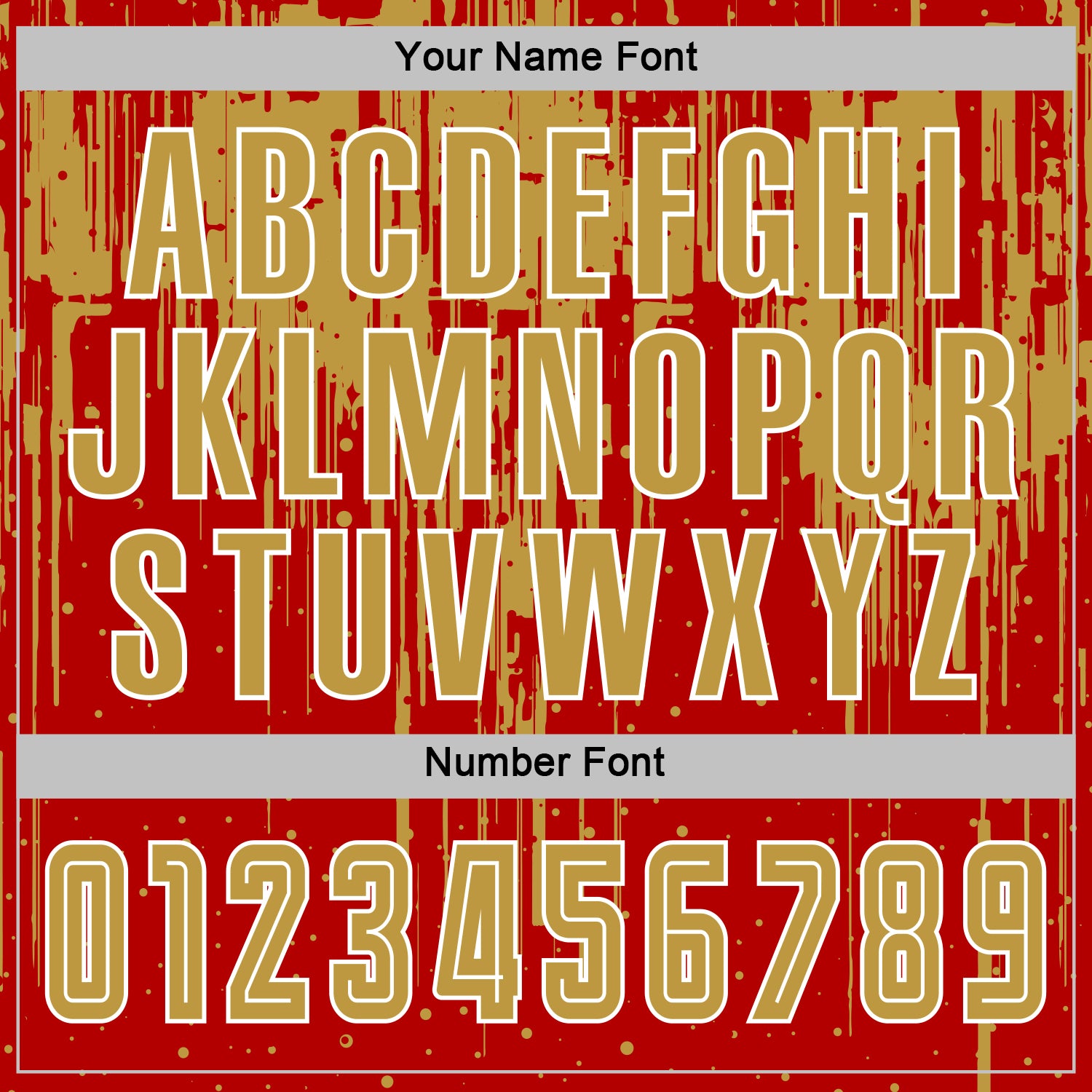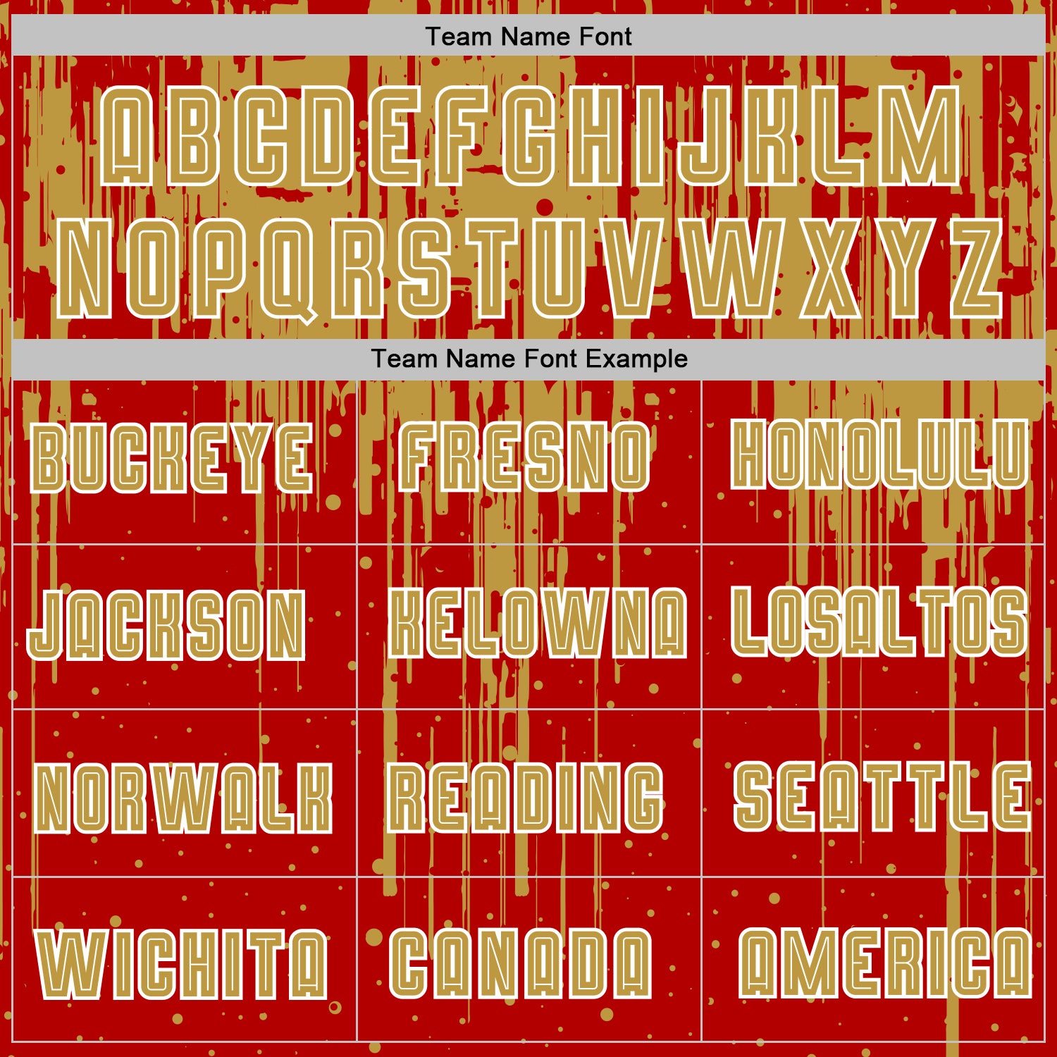 Custom Red Old Gold-White Dripping Splatte Pattern Sports Sublimation Soccer Uniform Jersey