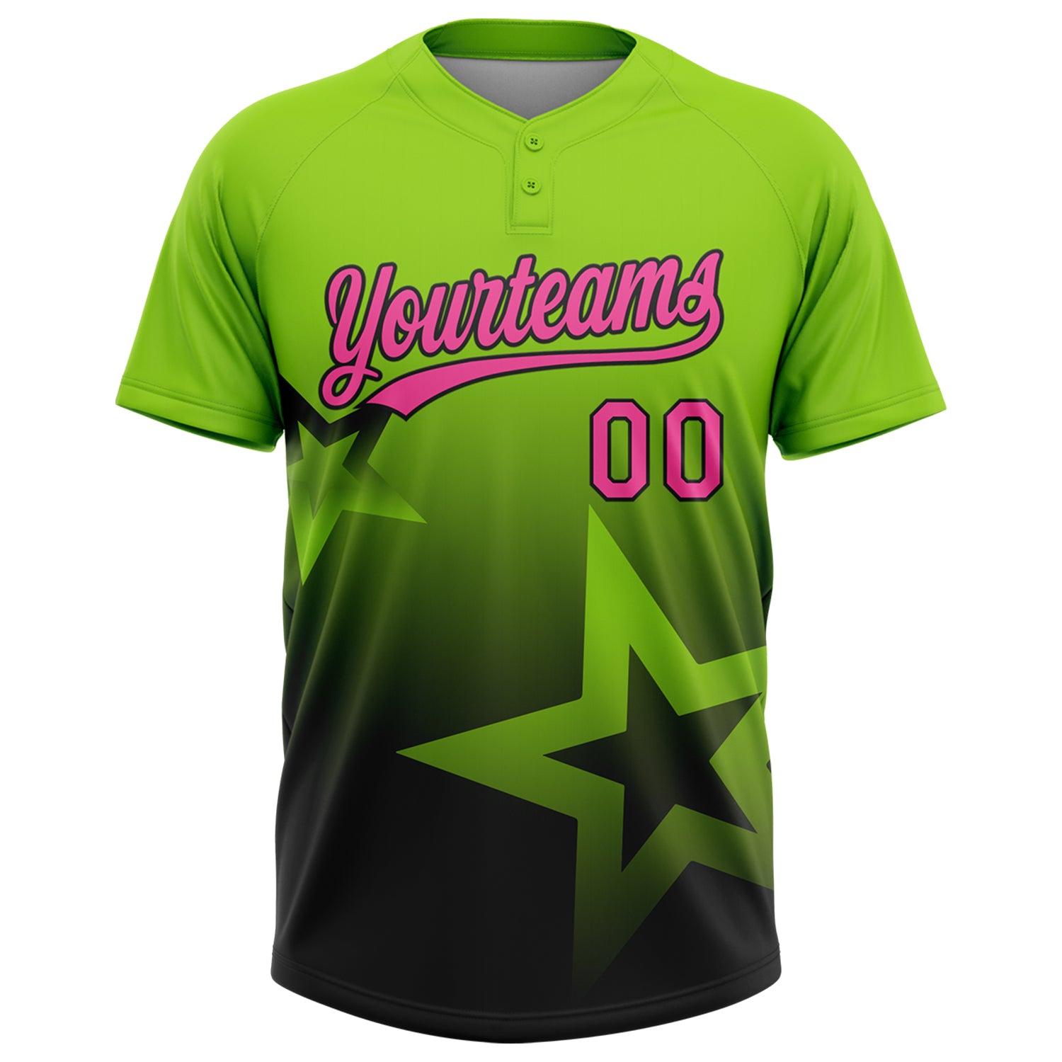 Custom Neon Green Pink-Black Gradient Style Twinkle Star Two-Button Unisex Softball Jersey