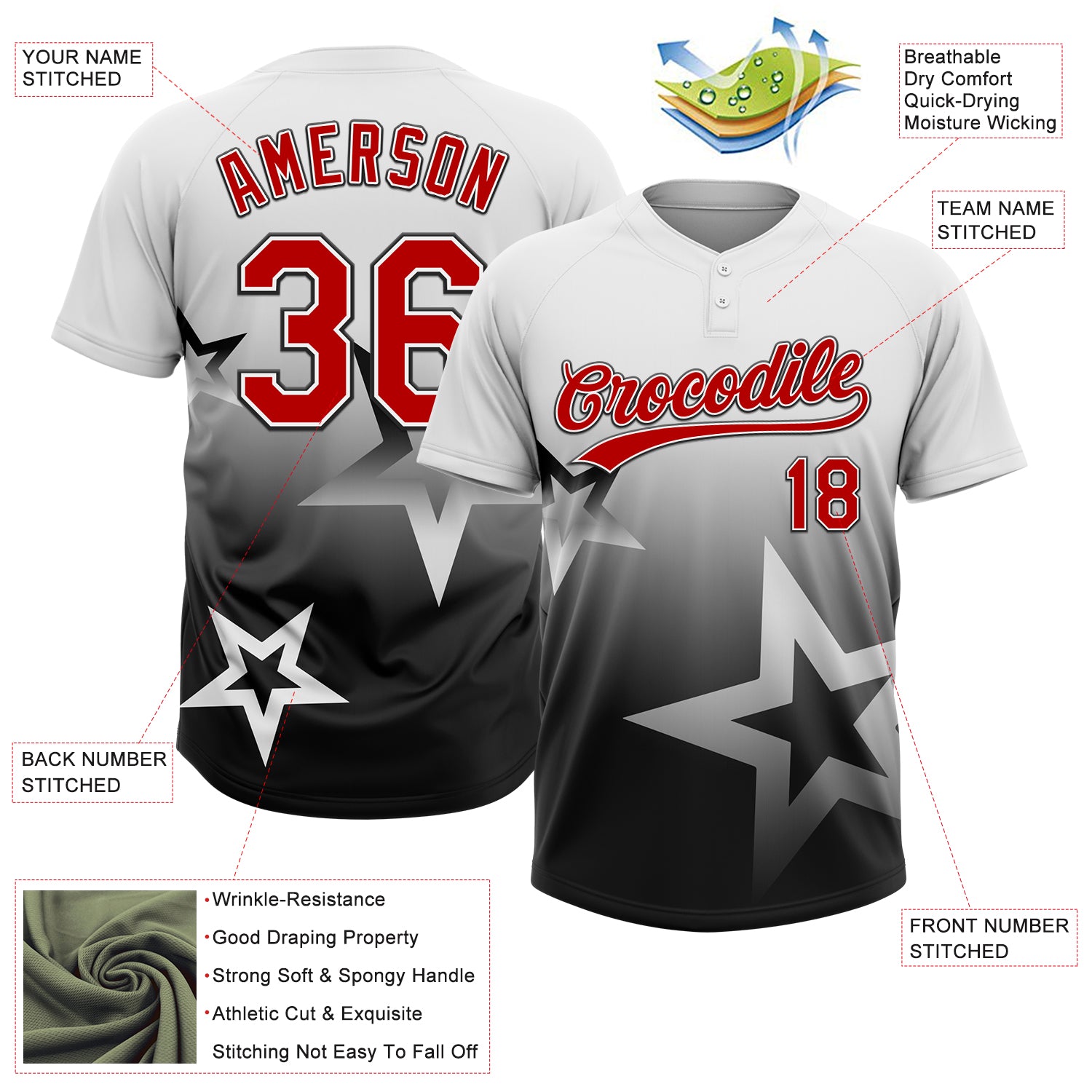 Custom White Red-Black Gradient Style Twinkle Star Two-Button Unisex Softball Jersey