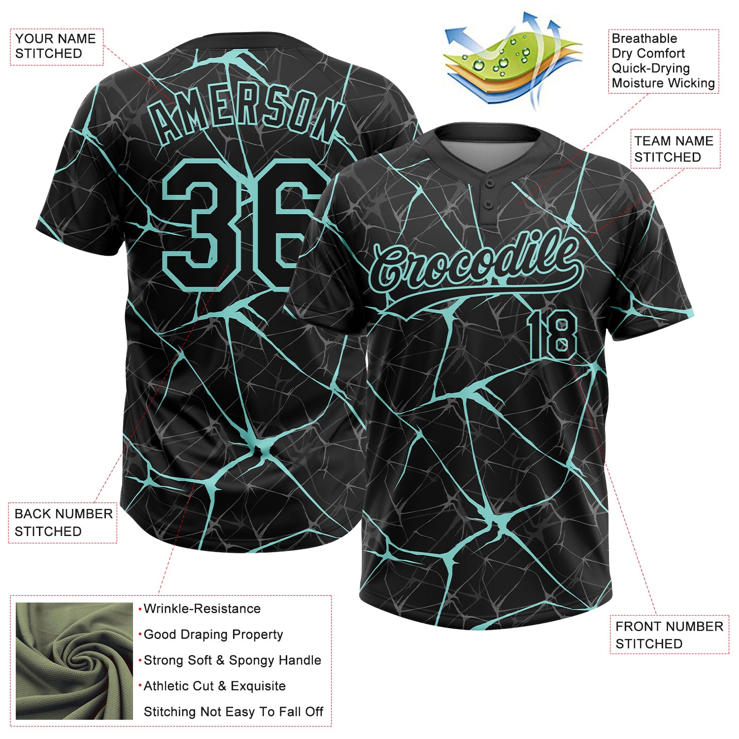 Custom Black Ice Blue 3D Pattern Design Abstract Network Two-Button Unisex Softball Jersey