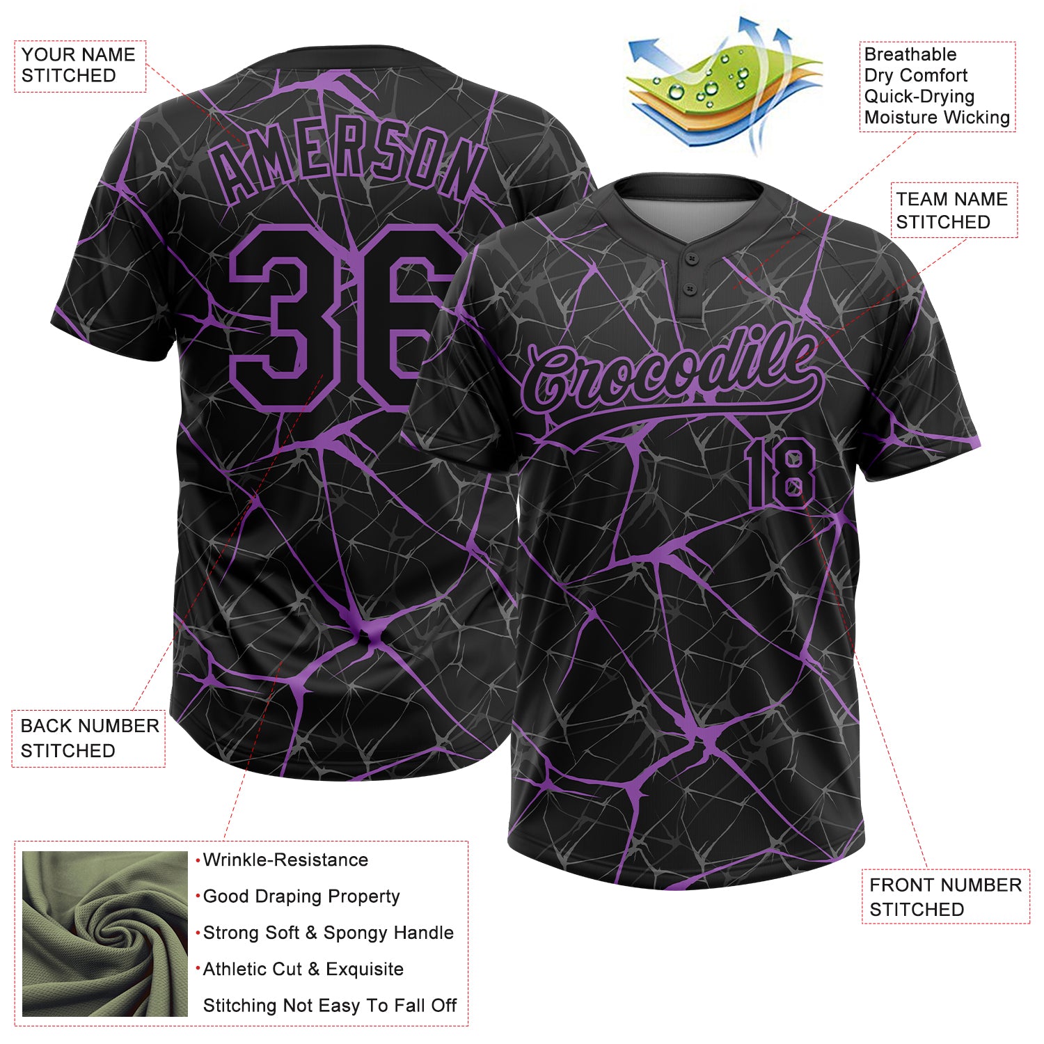 Custom Black Medium Purple 3D Pattern Design Abstract Network Two-Button Unisex Softball Jersey