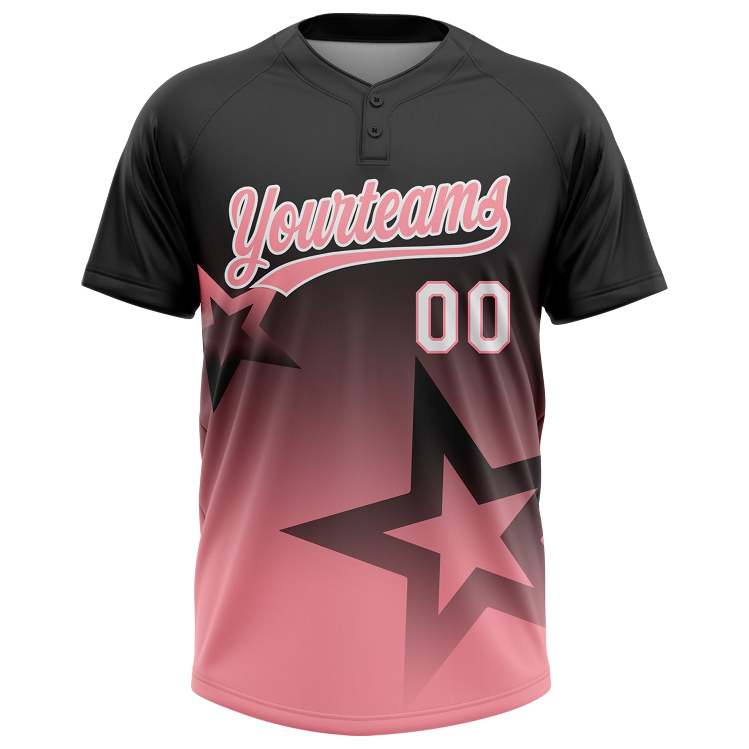 Custom Black Medium Pink-White Gradient Style Twinkle Star Two-Button Unisex Softball Jersey