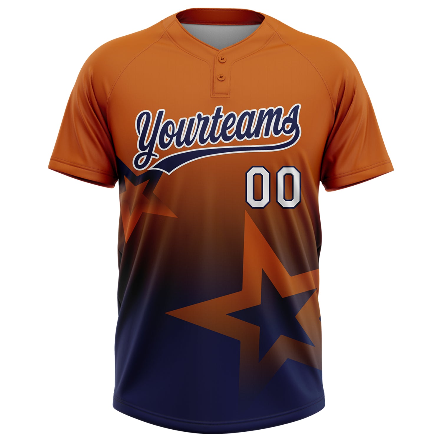 Custom Texas Orange Navy-White Gradient Style Twinkle Star Two-Button Unisex Softball Jersey