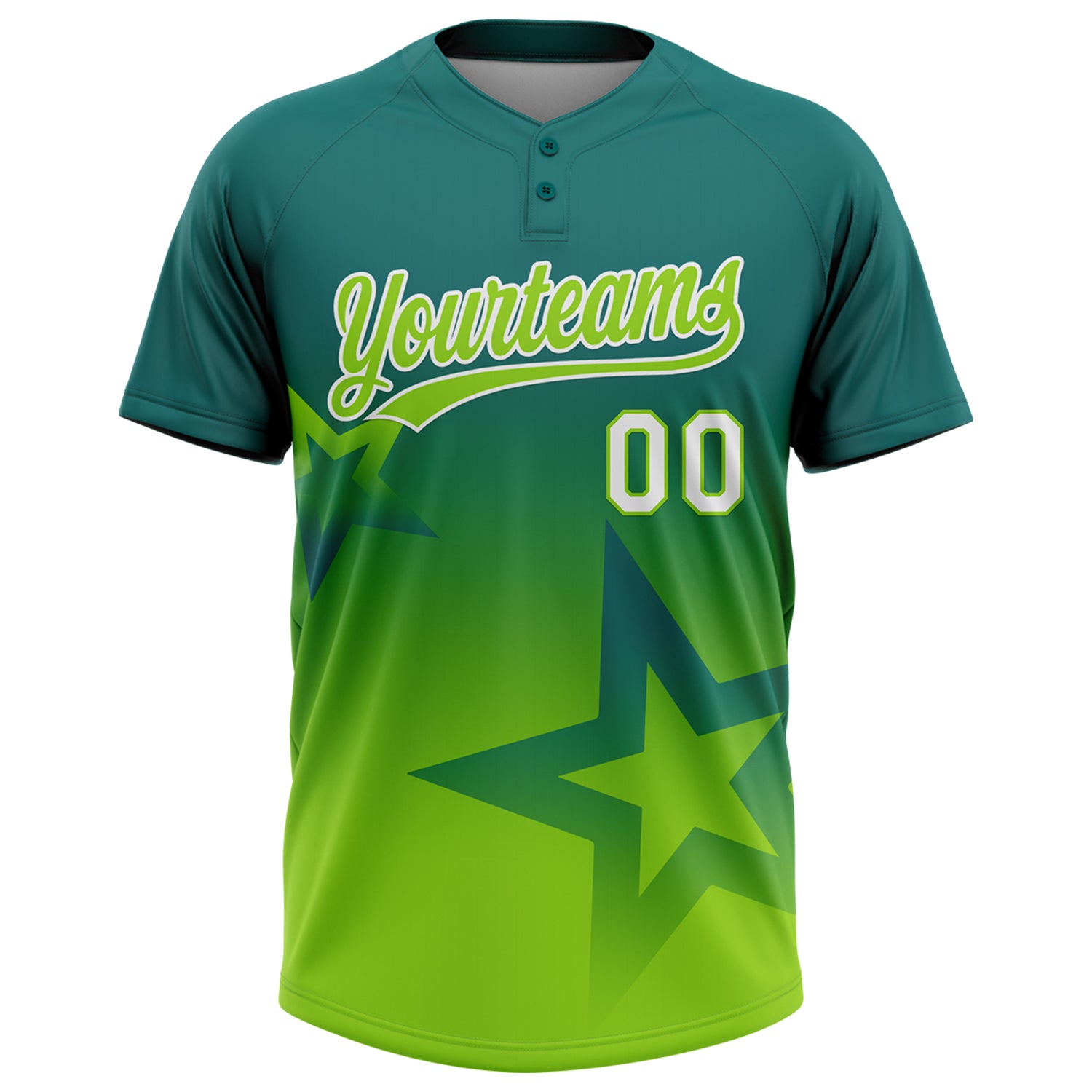 Custom Teal Neon Green-White Gradient Style Twinkle Star Two-Button Unisex Softball Jersey