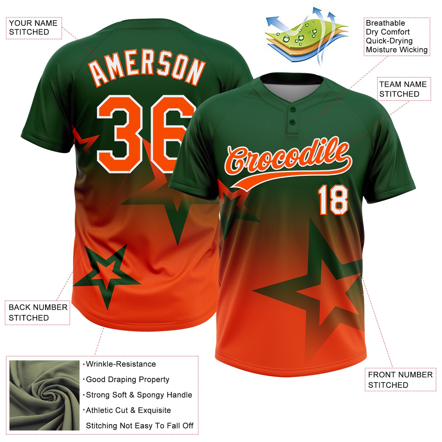 Custom Green Orange-White Gradient Style Twinkle Star Two-Button Unisex Softball Jersey