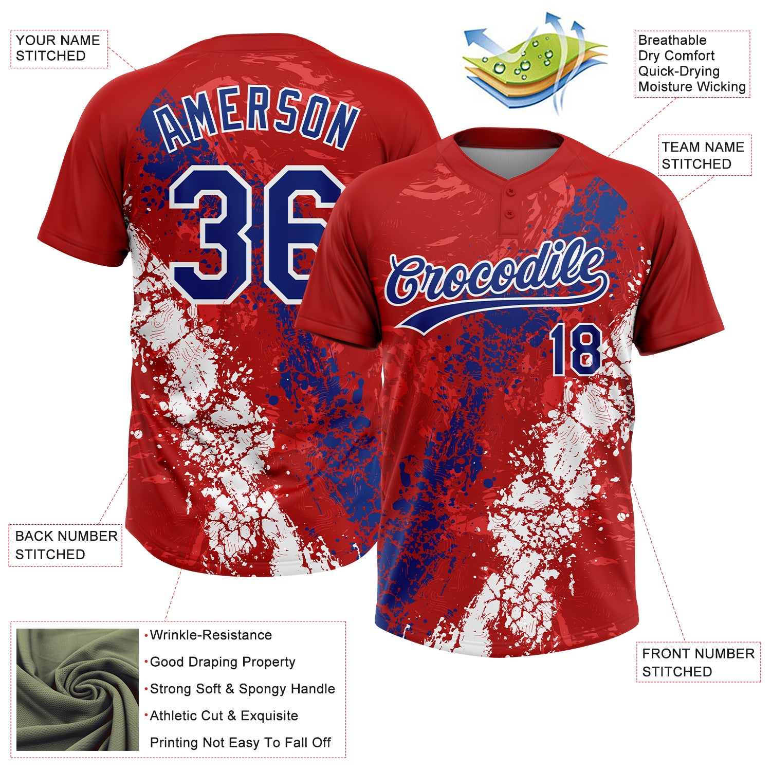 Custom Red Royal-White Dripping Splatter Cracked Texture Two-Button Unisex Softball Jersey