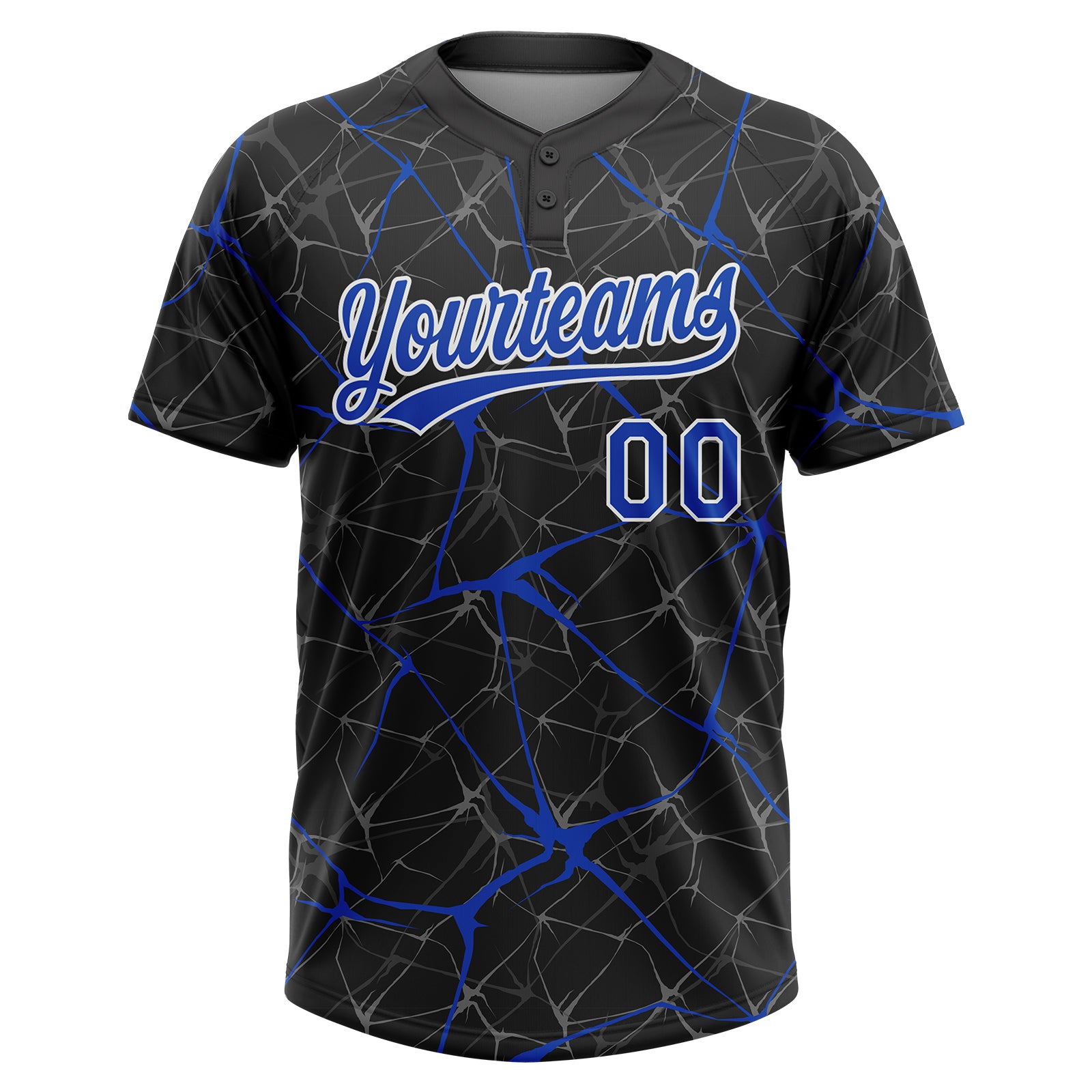Custom Black Thunder Blue-White 3D Pattern Design Abstract Network Two-Button Unisex Softball Jersey