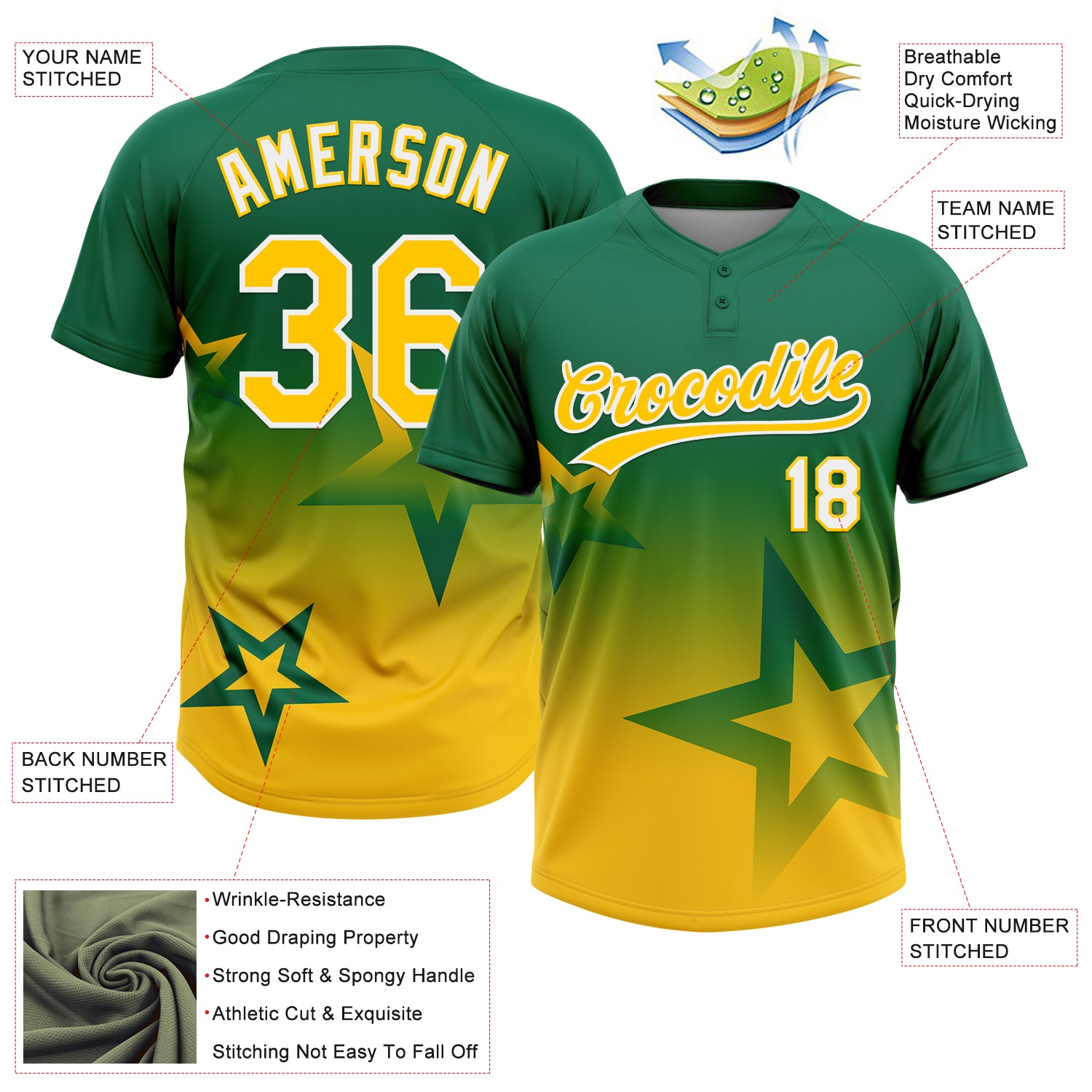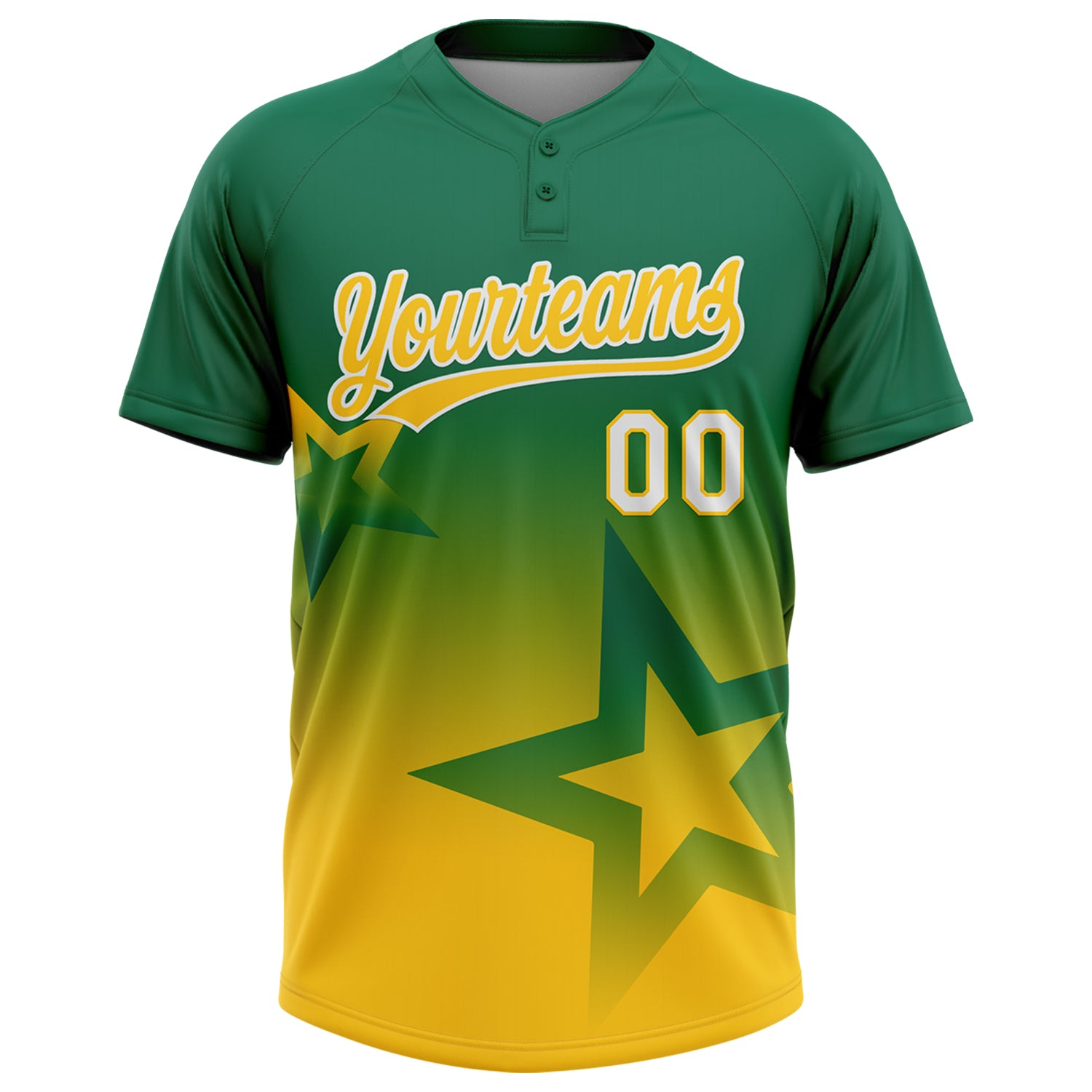 Custom Kelly Green Yellow-White Gradient Style Twinkle Star Two-Button Unisex Softball Jersey