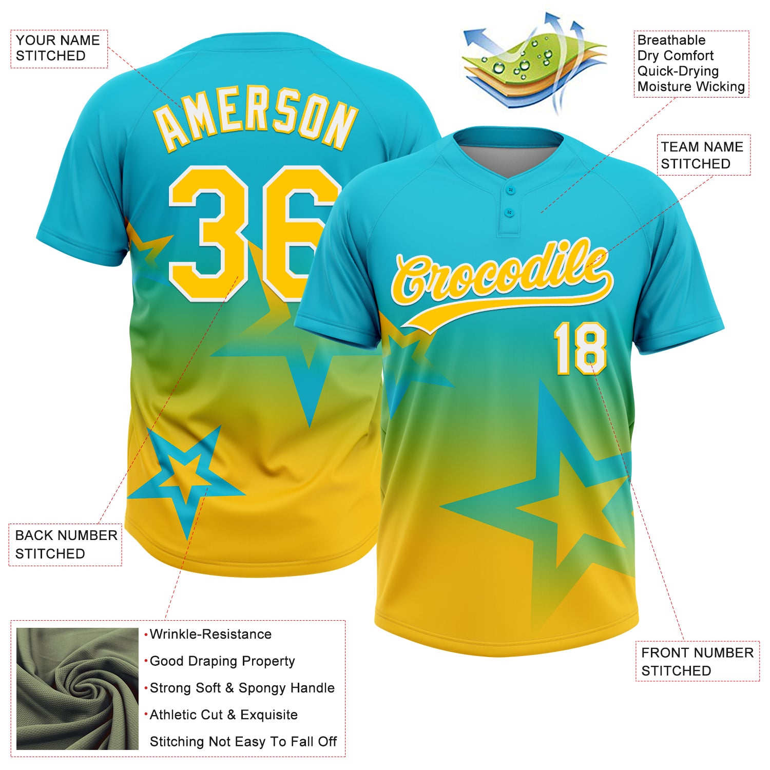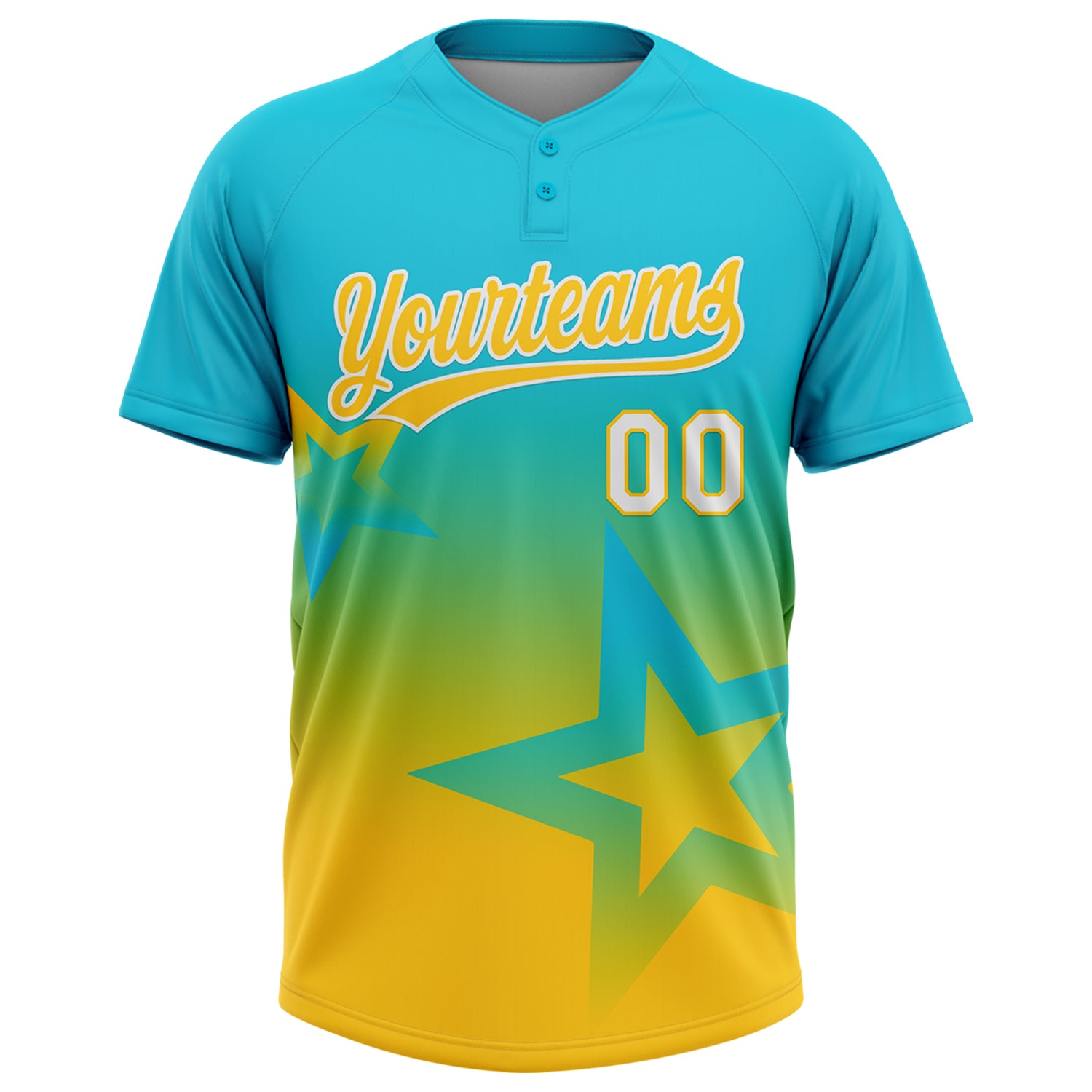 Custom Lakes Blue Yellow-White Gradient Style Twinkle Star Two-Button Unisex Softball Jersey