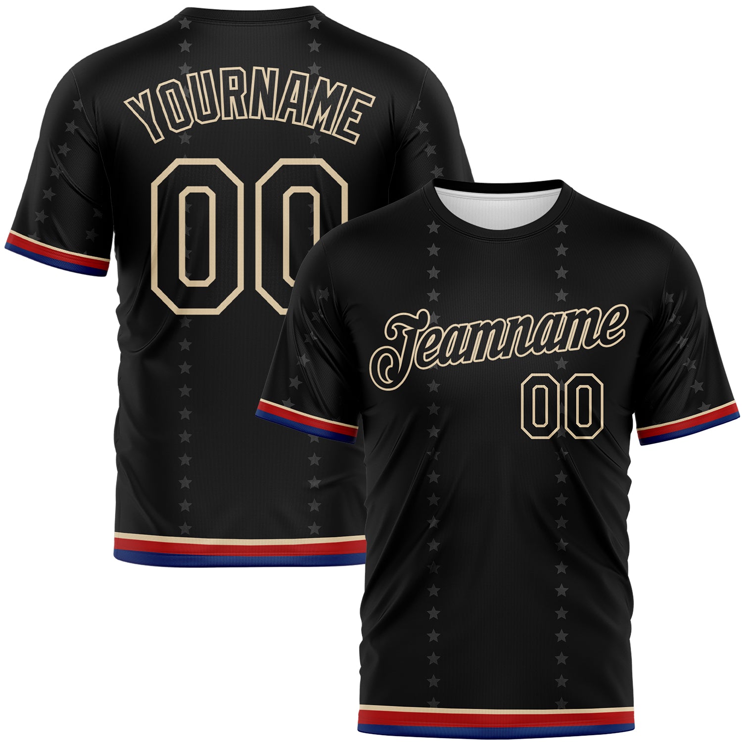 Custom Black Red Royal-City Cream Star Sportswear Performance T-Shirt