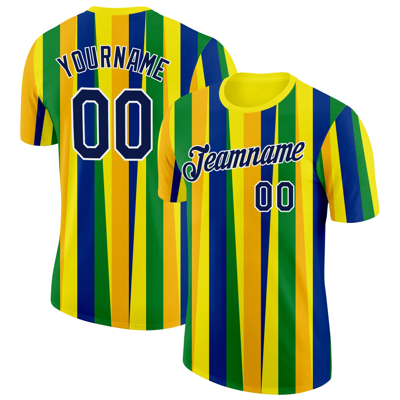 Custom Gold Navy Blue Green-White Brazil Stripe Performance T-Shirt