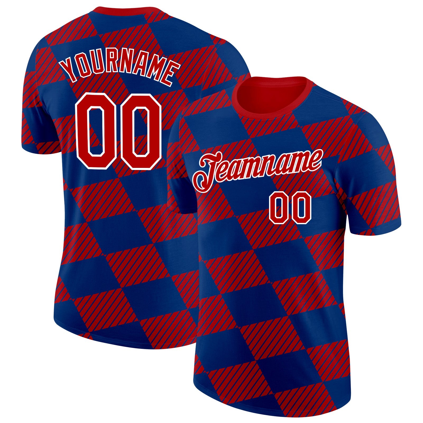 Custom Red Blue-White Netherlands Line And Geometric Shapes Performance T-Shirt