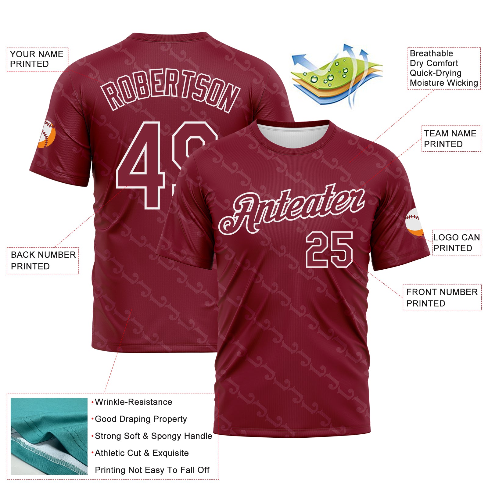 Custom Crimson-White Subtle Tonal Print Sportswear Performance T-Shirt