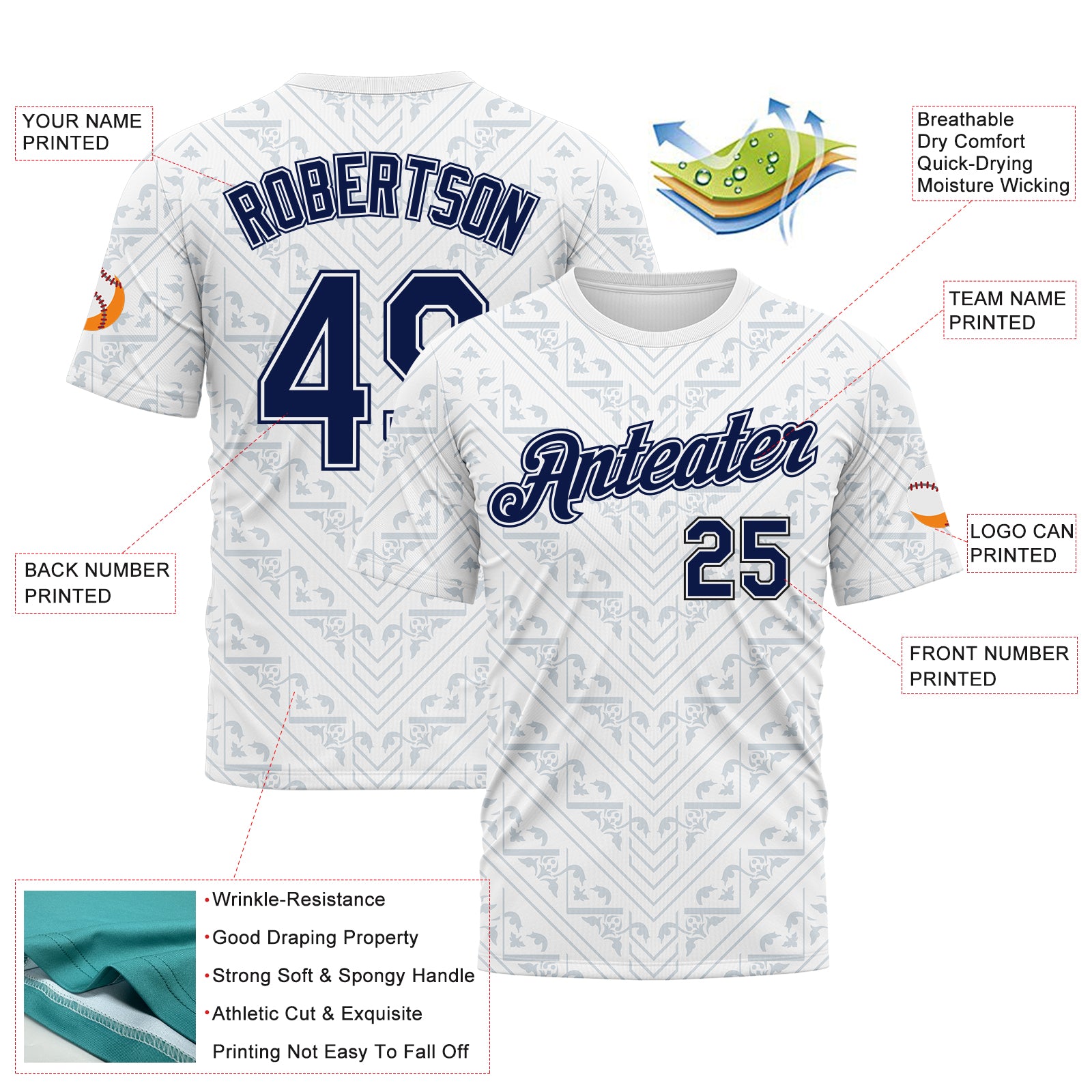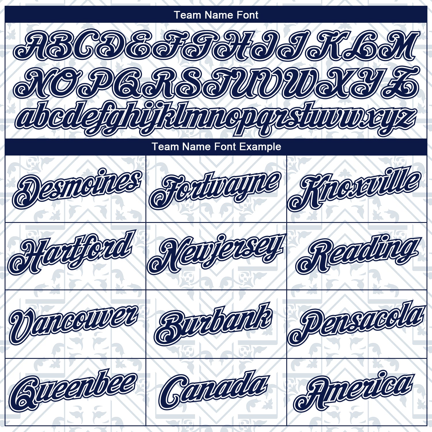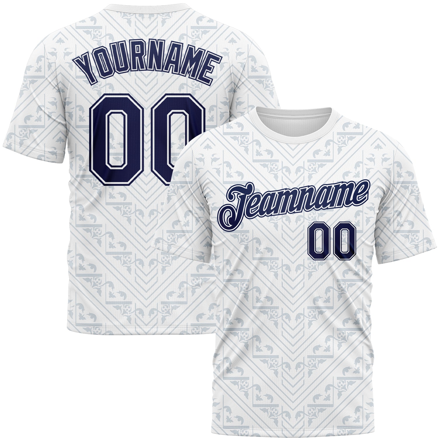 Custom White Navy-Gray Geometric Floral Subtle Sportswear Performance T-Shirt