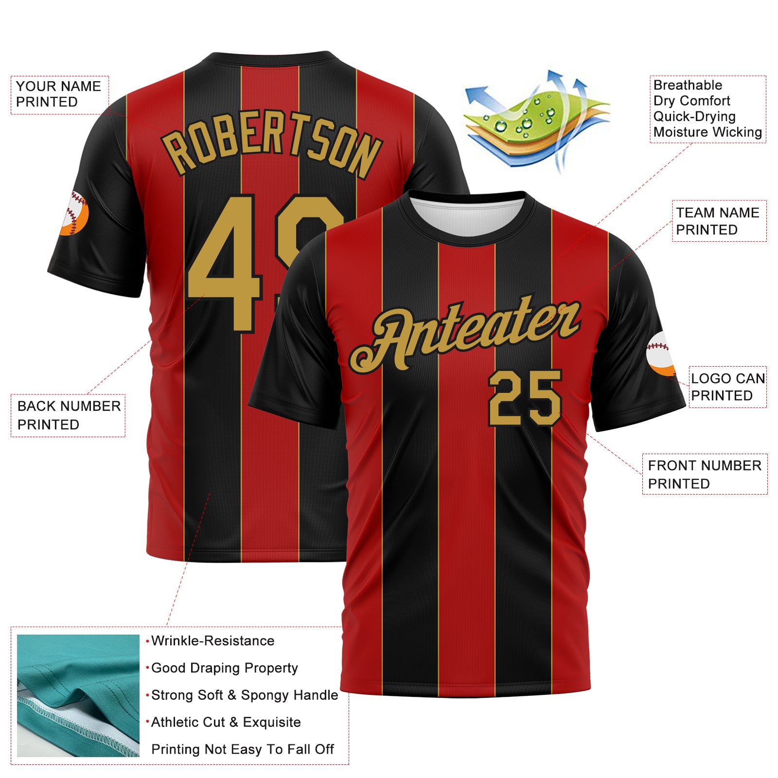 Custom Black Old Gold-Red Stripe Sportswear Performance T-Shirt