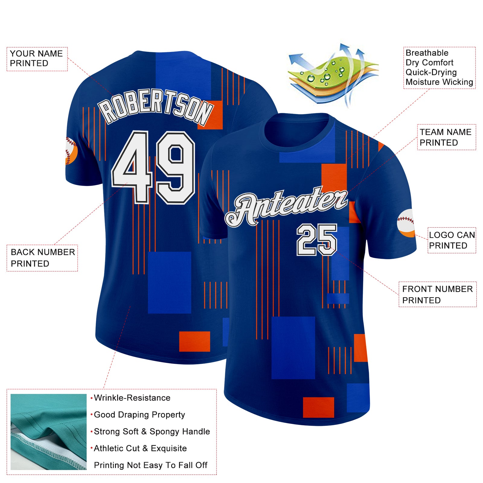 Custom Blue White Orange-Black Netherlands Geometric Shapes Performance T-Shirt