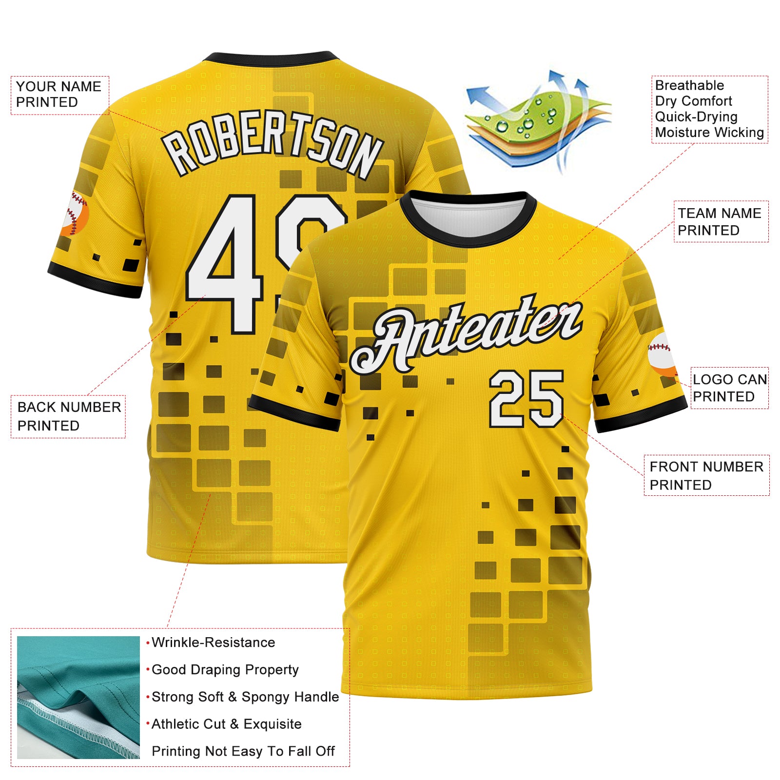 Custom Yellow White-Black Geometric Square Cyber Tech Gaming Sportswear Performance T-Shirt