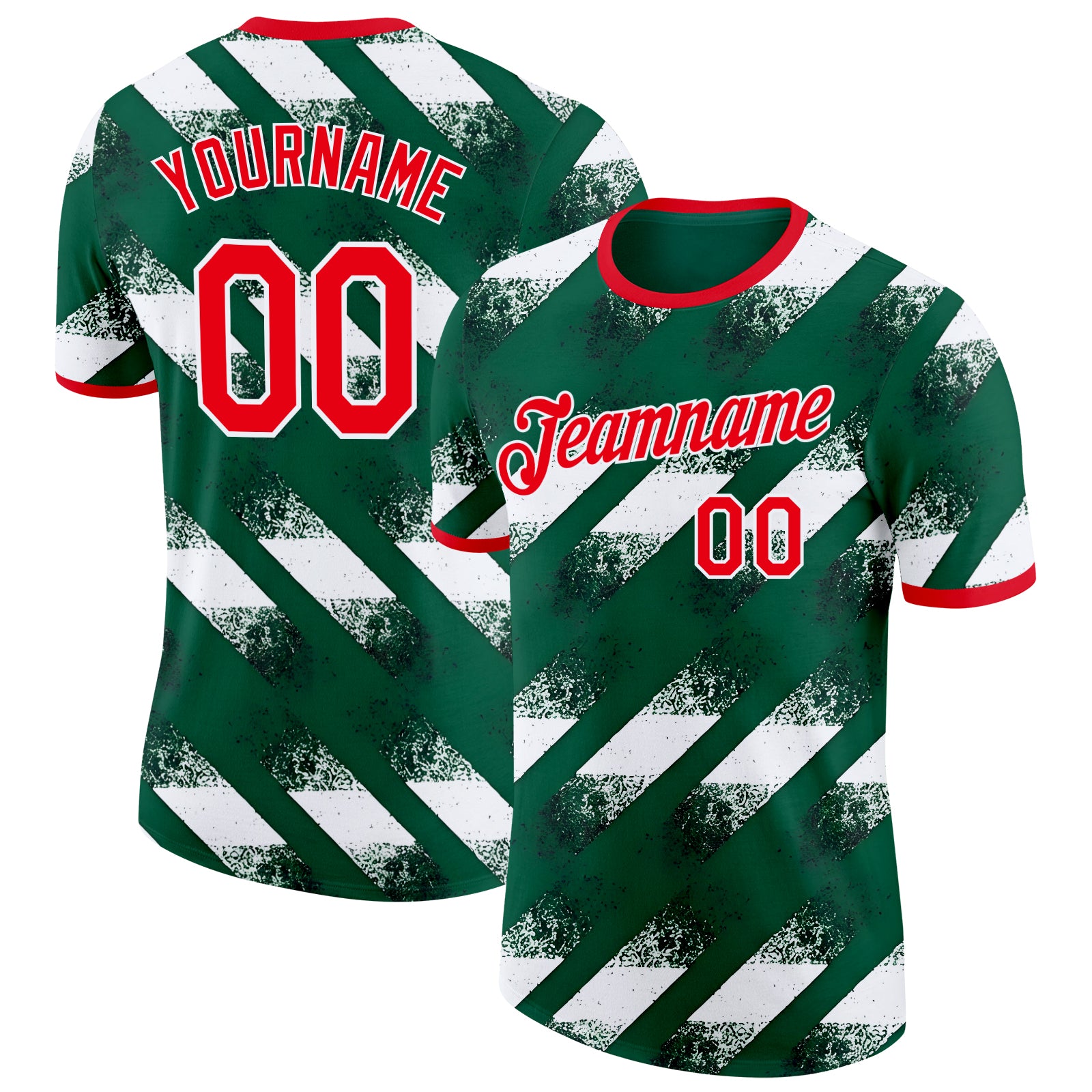 • Laden Sie das Bild in den Galerie-Viewer, Custom Green Fire Red-White Algeria Distressed Diagonal Stripe Performance T-Shirt