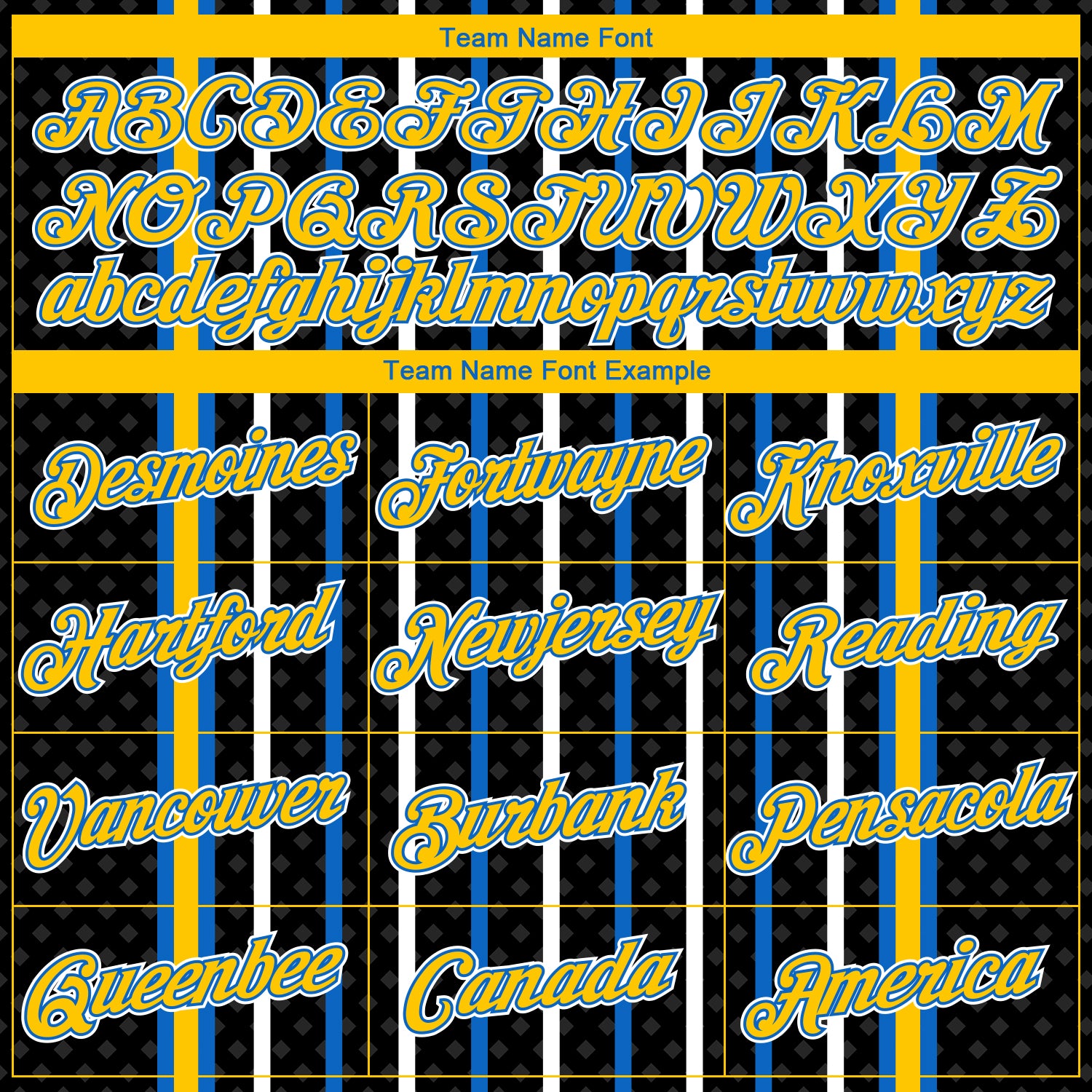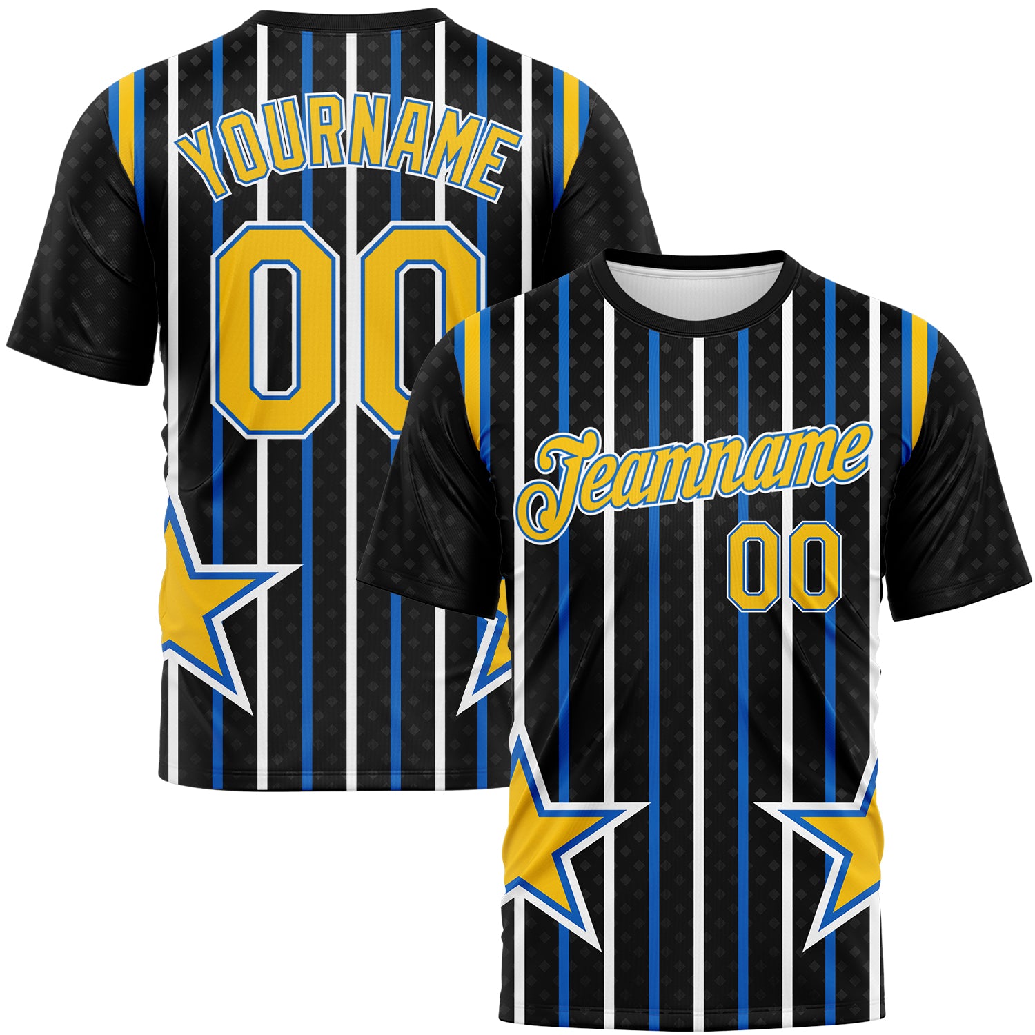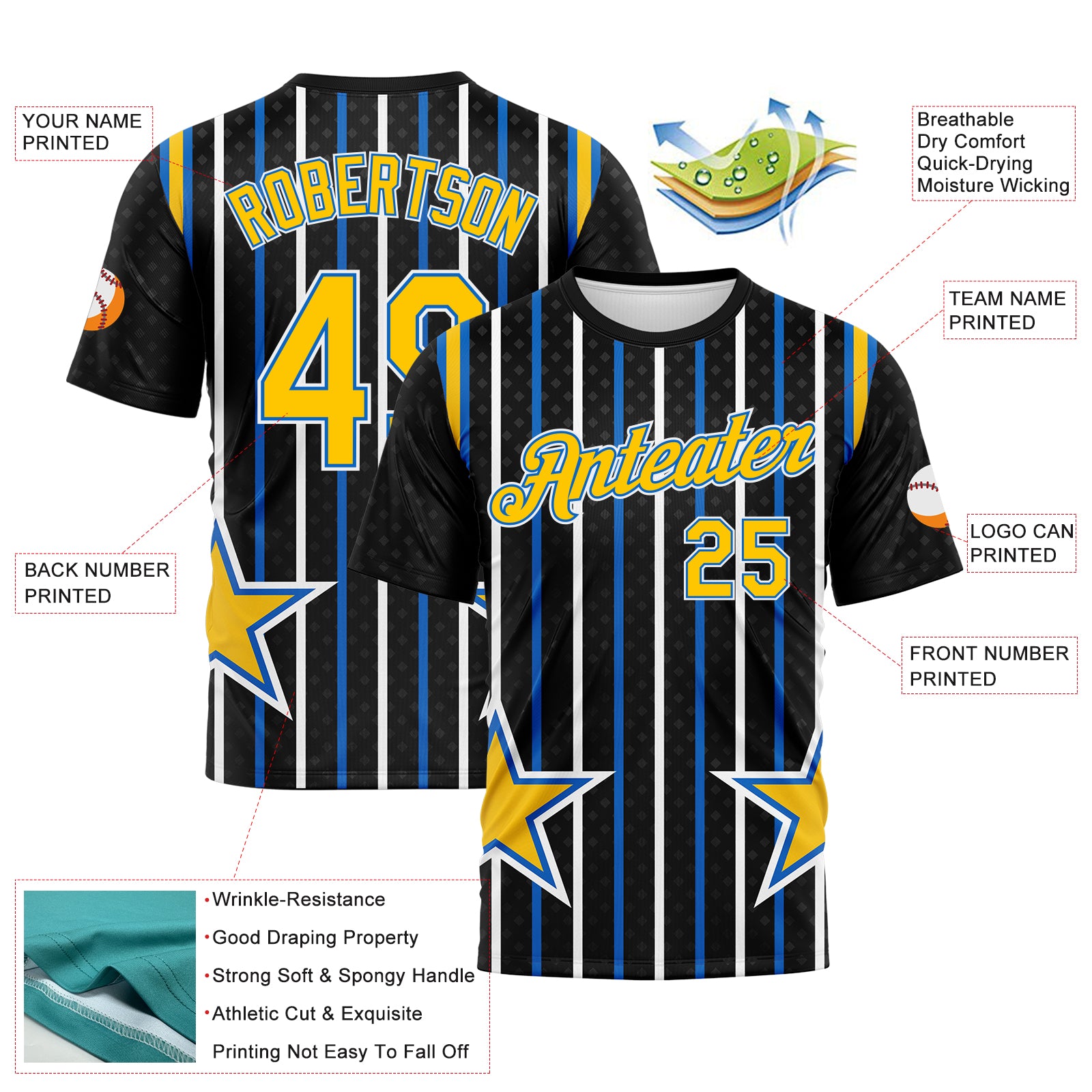 Custom Black Yellow Blue-White Stripe And Star Sportswear Performance T-Shirt