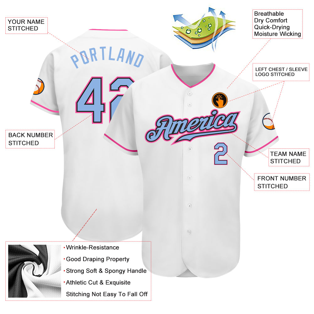 Custom White Light Blue Black-Pink Authentic Baseball Jersey