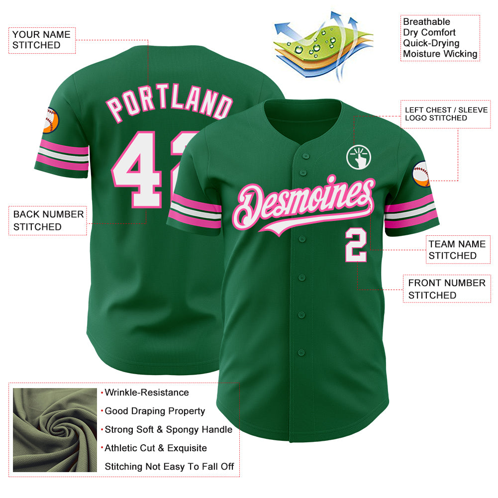 Custom Kelly Green White-Pink Authentic Baseball Jersey