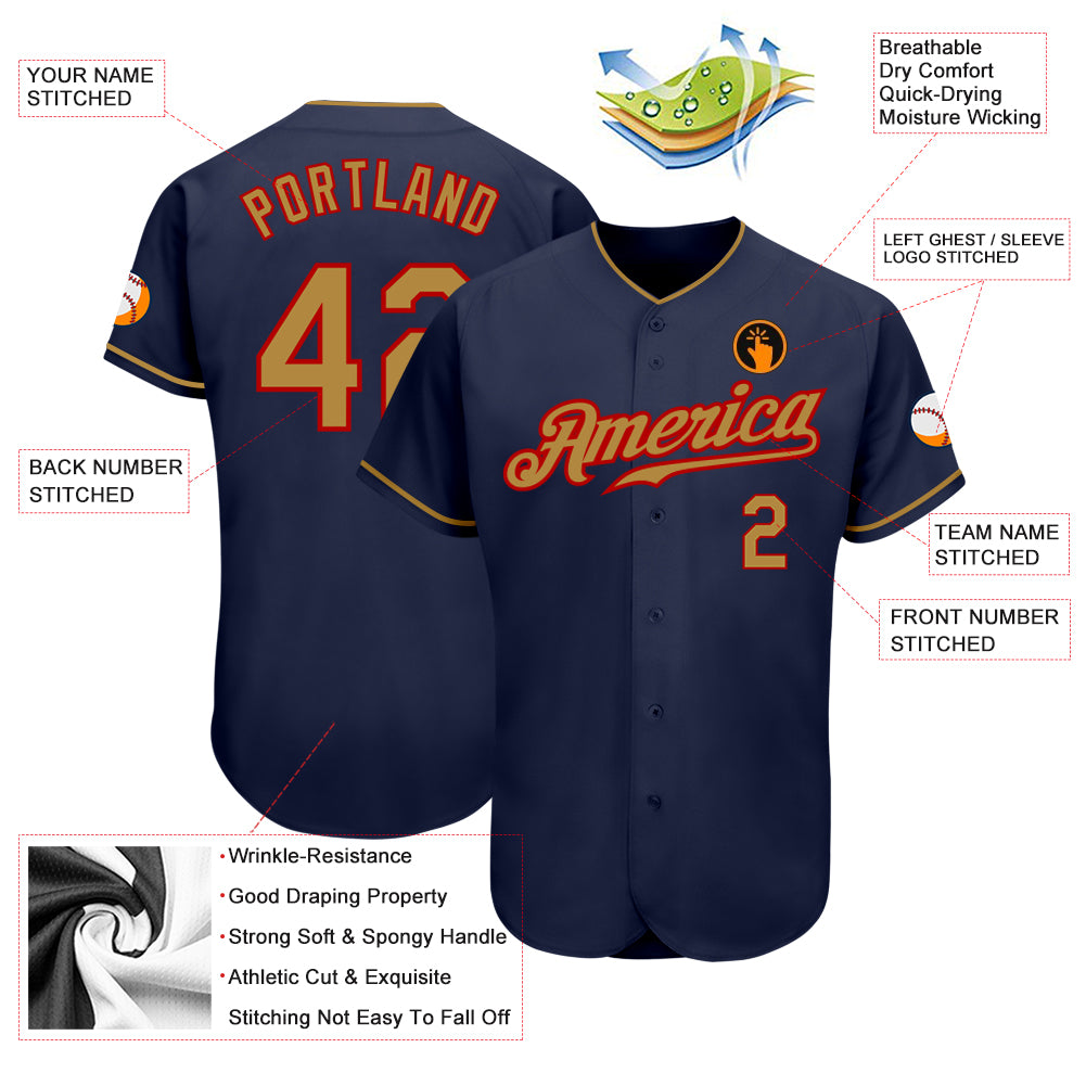 Custom Navy Old Gold-Red Authentic Baseball Jersey