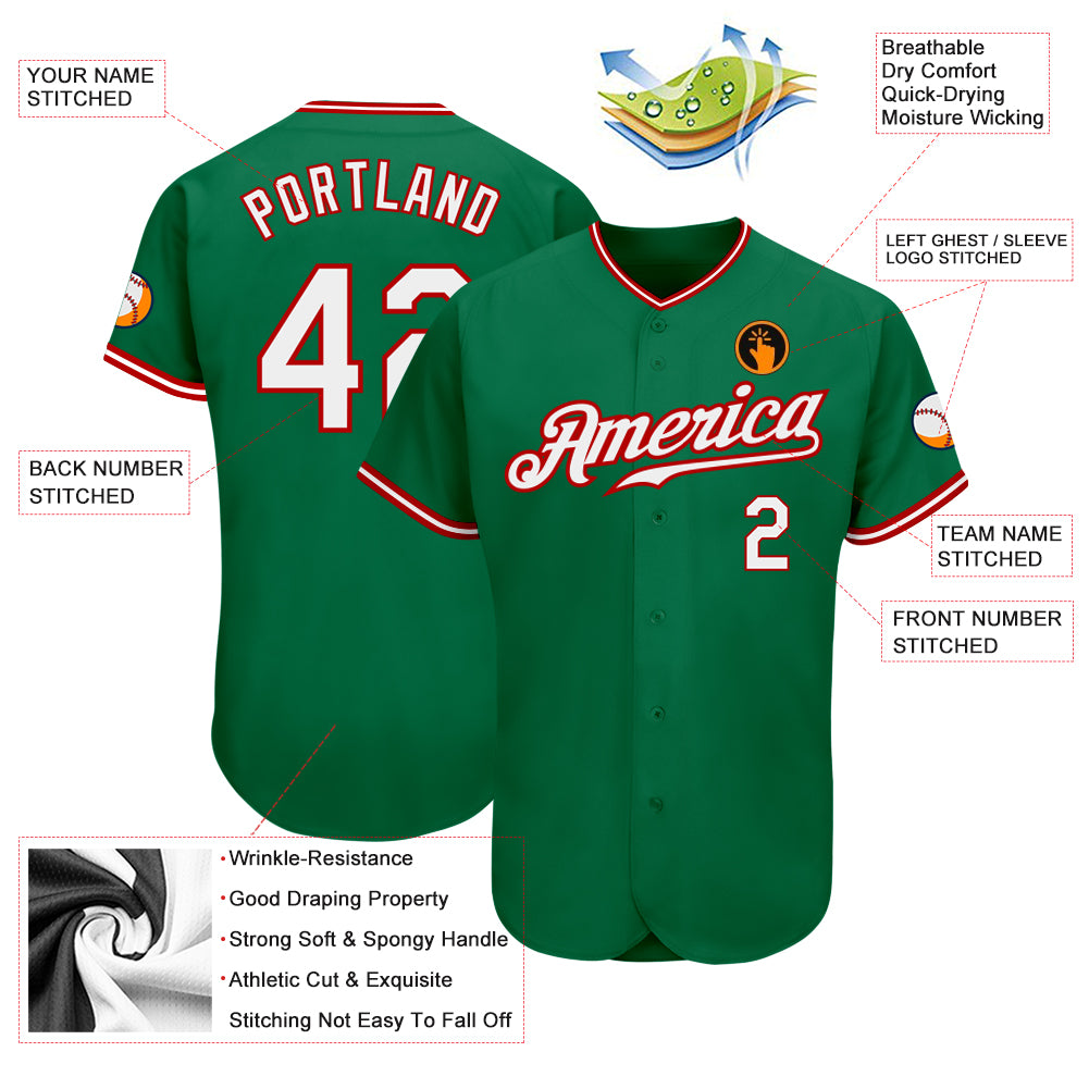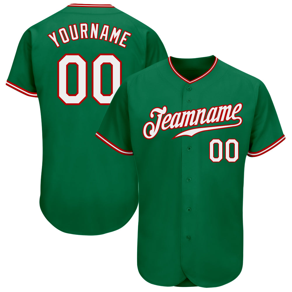 Custom Kelly Green White-Red Authentic Baseball Jersey