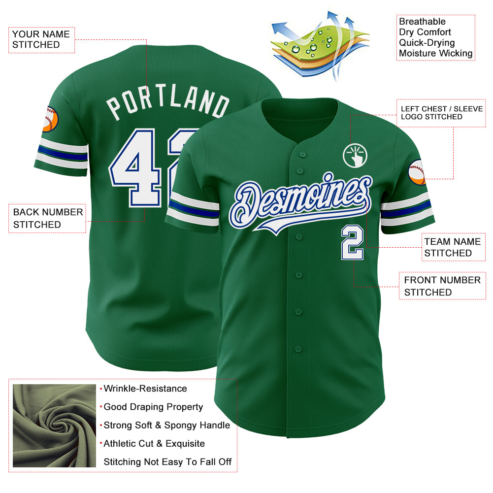 Custom Kelly Green White-Royal Authentic Baseball Jersey