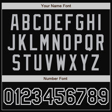 • Laden Sie das Bild in den Galerie-Viewer, Custom Black White Pinstripe Black-Gray Bomber Full-Snap Varsity Letterman Jacket