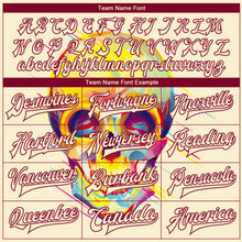 • Laden Sie das Bild in den Galerie-Viewer, Custom Cream Maroon Skull Fashion 3D Bomber Full-Snap Varsity Letterman Jacket