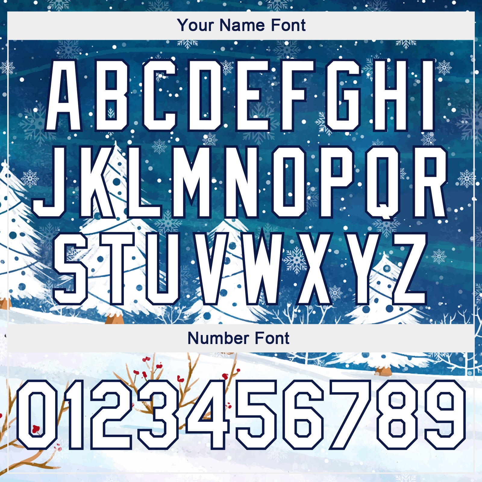 Custom Royal White-Navy Watercolor Winter Landscape With Snowy Trees 3D Pattern Design Bomber Full-Snap Varsity Letterman Jacket