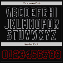 • Laden Sie das Bild in den Galerie-Viewer, Custom Black Gray Pinstripe Red Bomber Full-Snap Varsity Letterman Jacket