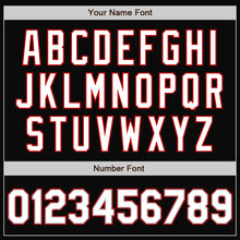 • Laden Sie das Bild in den Galerie-Viewer, Custom Black Gray Pinstripe White-Red Bomber Full-Snap Varsity Letterman Jacket