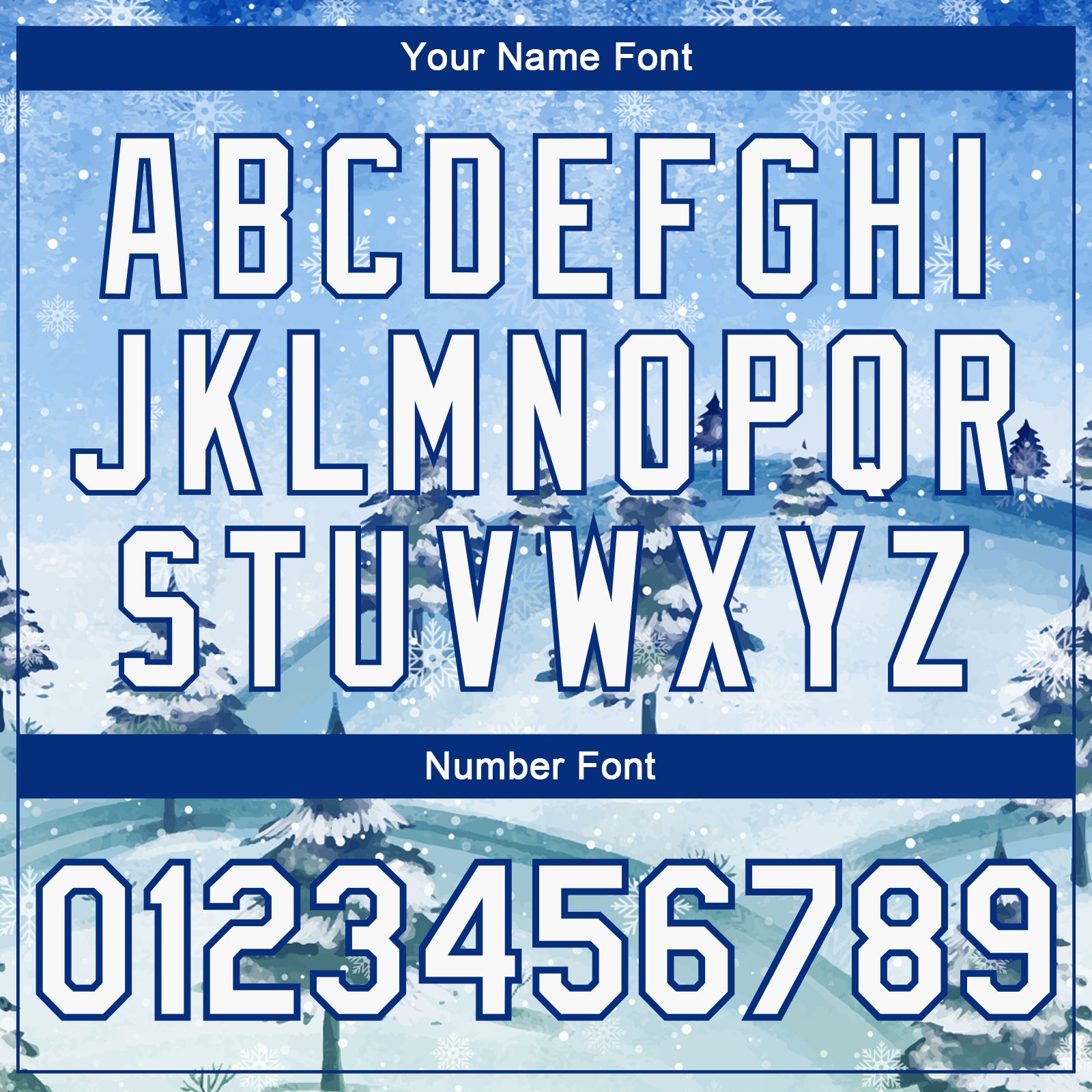 Custom Light Blue White-Royal Watercolor Winter Landscape With Snowy Trees 3D Pattern Design Bomber Full-Snap Varsity Letterman Jacket