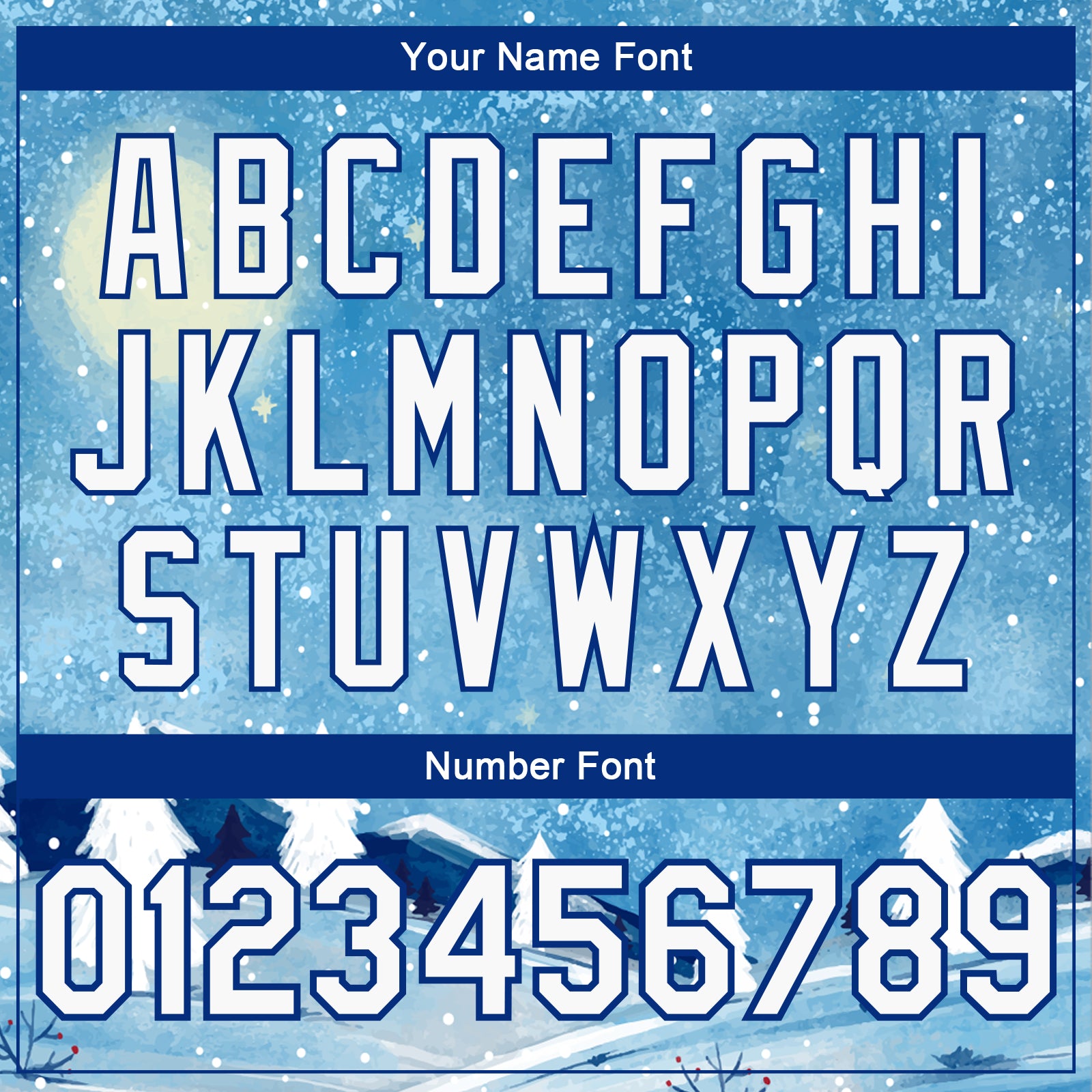 Custom Light Blue White-Royal Watercolor Winter Landscape With Snowy Trees 3D Pattern Design Bomber Full-Snap Varsity Letterman Jacket
