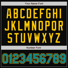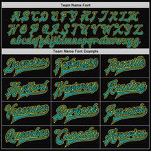 • Laden Sie das Bild in den Galerie-Viewer, Custom Black Yellow Pinstripe Teal Bomber Full-Snap Varsity Letterman Jacket
