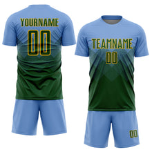• Laden Sie das Bild in den Galerie-Viewer, Custom Light Blue Green-Gold Sublimation Soccer Uniform Jersey