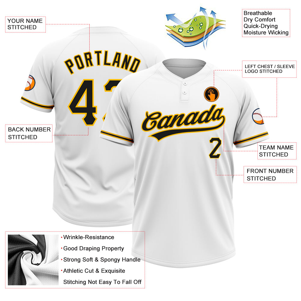 Custom White Black-Gold Two-Button Unisex Softball Jersey