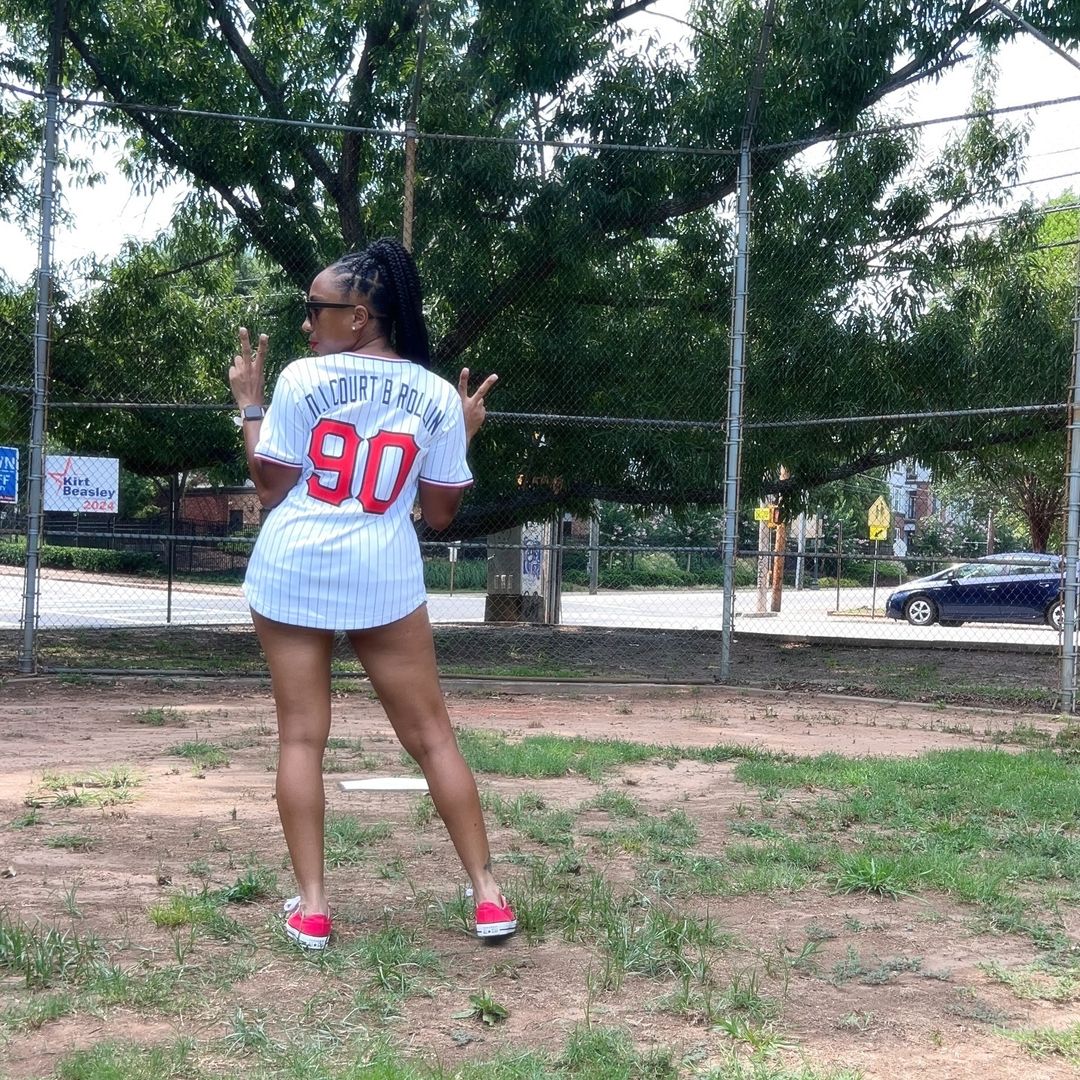 Ensure that your White Pinstripe custom jersey and custom shorts fit well, showcasing the spirit of baseball.