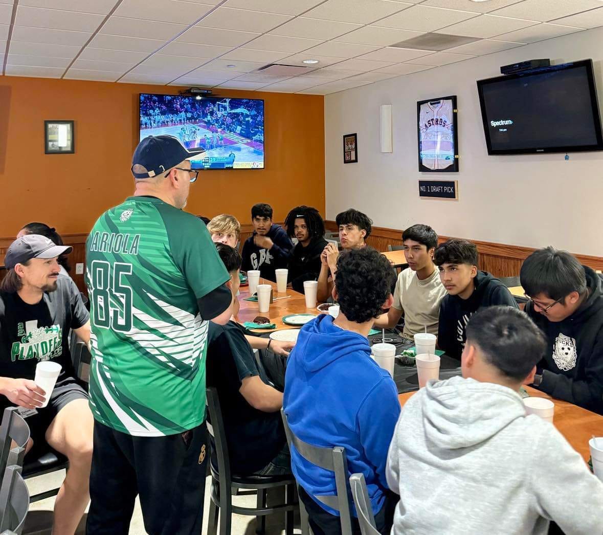 Wearing custom Kelly Green White Sublimation Soccer Jersey to attend player conference