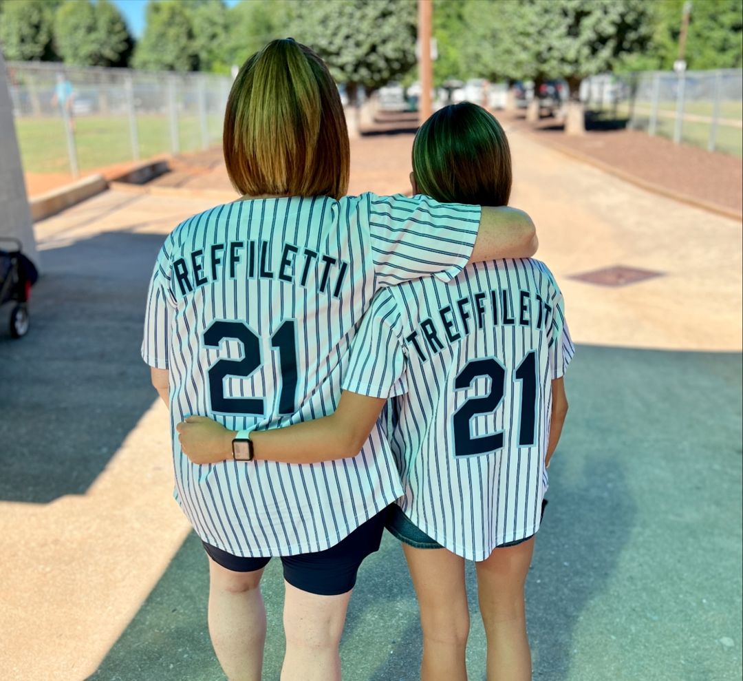 The women's team chose the White Pinstripe custom baseball jersey as their team equipment, paired with shorts and sunglasses, not only showcasing the unity and professionalism of the team, but also cleverly integrating fashion and sports elements, making it perfect for outdoor games or training.