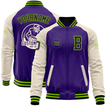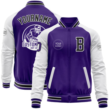 Customized jacket purple have a wide range of usage scenarios and diverse matching methods. The following is a detailed analysis: Usage scenarios: Business occasions: Customized varsity jackets showcase an elegant and professional temperament in business occasions. Its exquisite design and high-quality fabric can enhance the wearer's image, while the warmth of the jacket also ensures comfort during indoor or outdoor business activities. Leisure activities: Jackets are also suitable for leisure activities, such as outdoor activities on weekends, travel, or simple daily travel. Its comfort and flexibility allow wearers to enjoy leisure time while maintaining a sense of fashion. Sports and fitness: For sports enthusiasts, customizing a jacket is also a great choice. Some custom jerseys and jacket designs have waterproof, windproof and other functions, making them suitable for outdoor sports and protecting the body from adverse weather conditions. Matching method: custom jacket purple+ shirt: This is a classic matching method that is suitable for both business and casual occasions. Choosing a shirt with matching colors or patterns can create different styles. Jacket+ T-shirt: This is a more casual way of pairing, suitable for daily wear. A simple T-shirt combined with custom jacket purple is both comfortable and fashionable. Jacket+ pants: Whether it's jeans, casual pants, or trousers, they can all be paired with a jacket. It depends on the style you want to create, which can be casual and casual, or formal and elegant. Jacket+ skirt: The combination of jacket and skirt is also a unique attempt to showcase a gentle and elegant side. For example, the combination of short leather jackets with short buttocks skirts or printed skirts can produce good results. When customizing jackets, you can choose styles, fabrics, and colors according to your own needs and preferences. Through reasonable matching, customized jacket purple can become versatile items in your wardrobe, suitable for various occasions. Warm Custom Purple Jackets: Purple Kelly Green, Purple Orange, Purple Gray, Purple Pink, Purple Light Blue, Purple Black, Purple Aqua, Purple Sky Blue, Purple Vintage USA Flag, Purple Green, Purple Crimson, Purple Gold, Purple Neon Green, Purple Old Gold, Purple Red, Purple Teal, Purple Texas Orange, Purple White